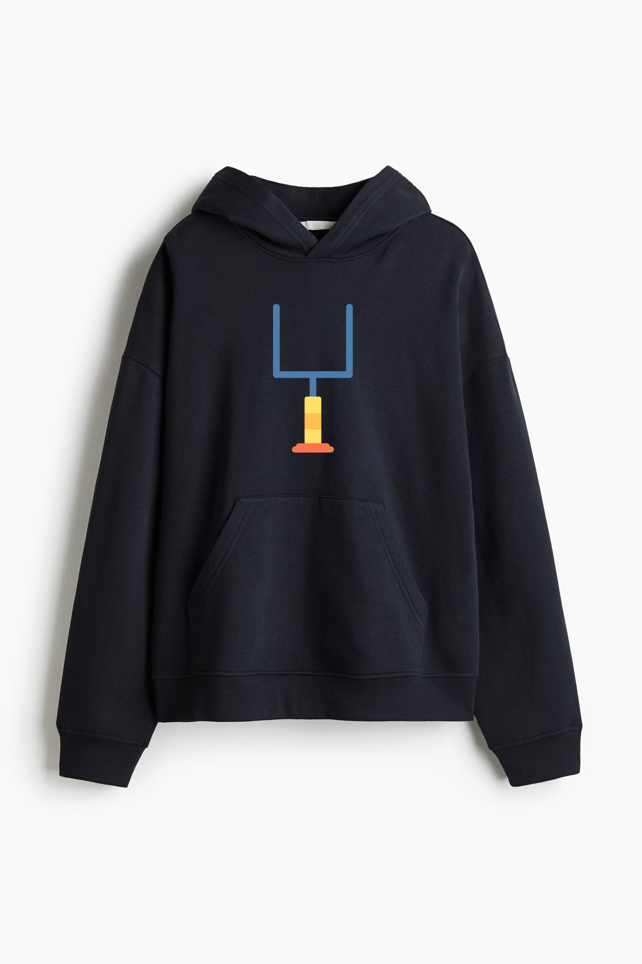 Make a bold statement in comfort with our American Football Goal Icon Oversized Fit Printed Hoodie Oversized Fit Printed Hoodie. Crafted from a soft, medium-weight cotton blend, this sweatshirt hoodie features a graphic motif, heavily dropped shoulders, and a relaxed silhouette for effortless streetwear style.