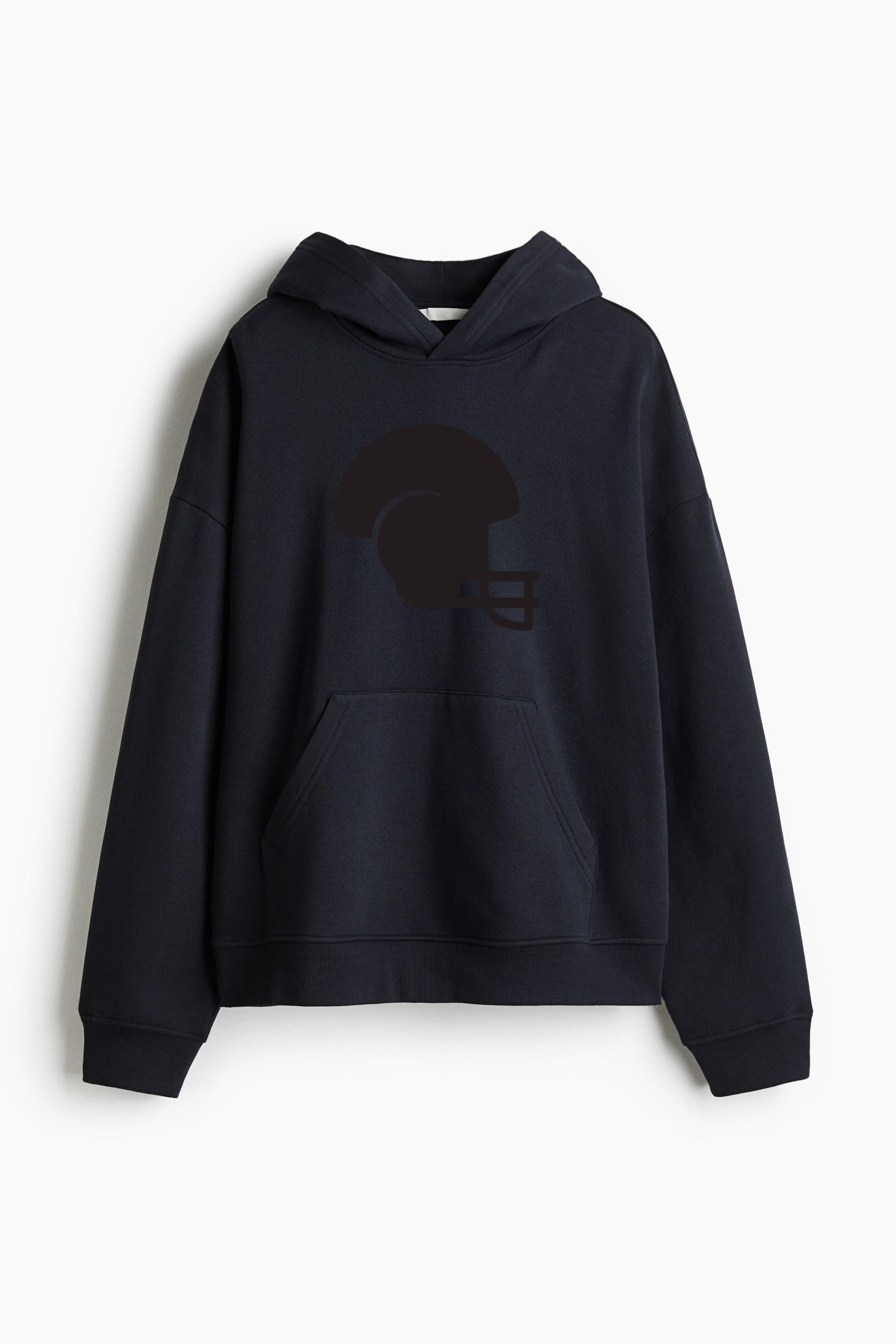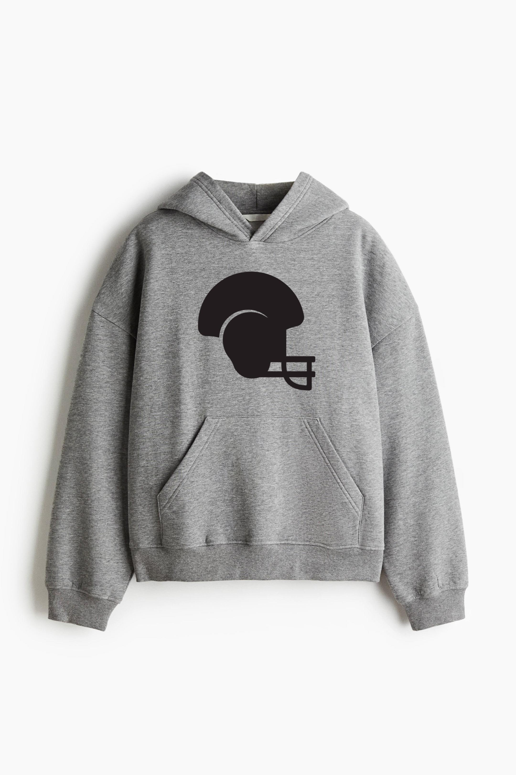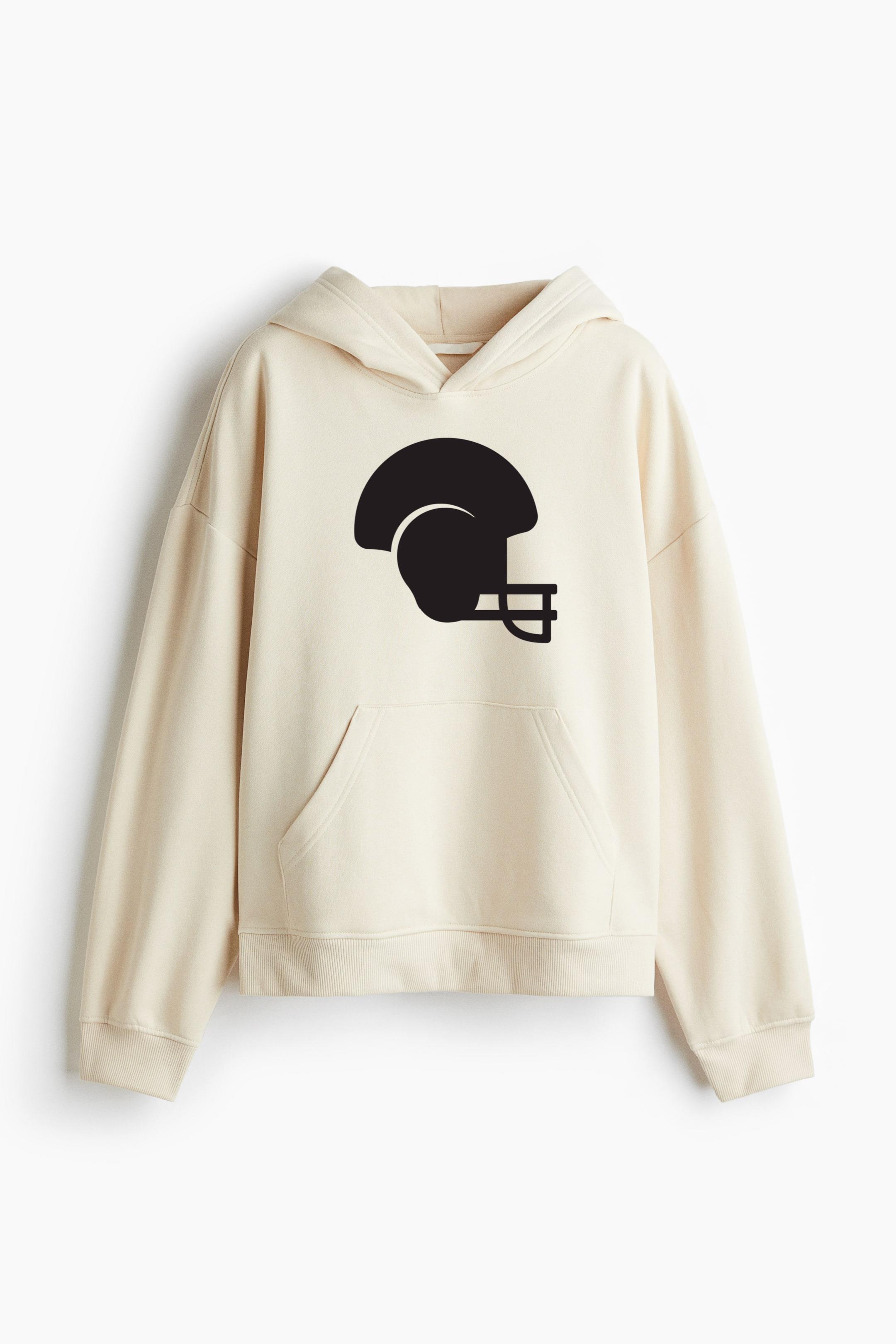 American Football Helmet Black Oversized Fit Printed Hoodie Oversized Fit Printed Hoodie – Extra-Loose Cotton-Blend Sweatshirt with Graphic Print and Brushed Fleece Interior