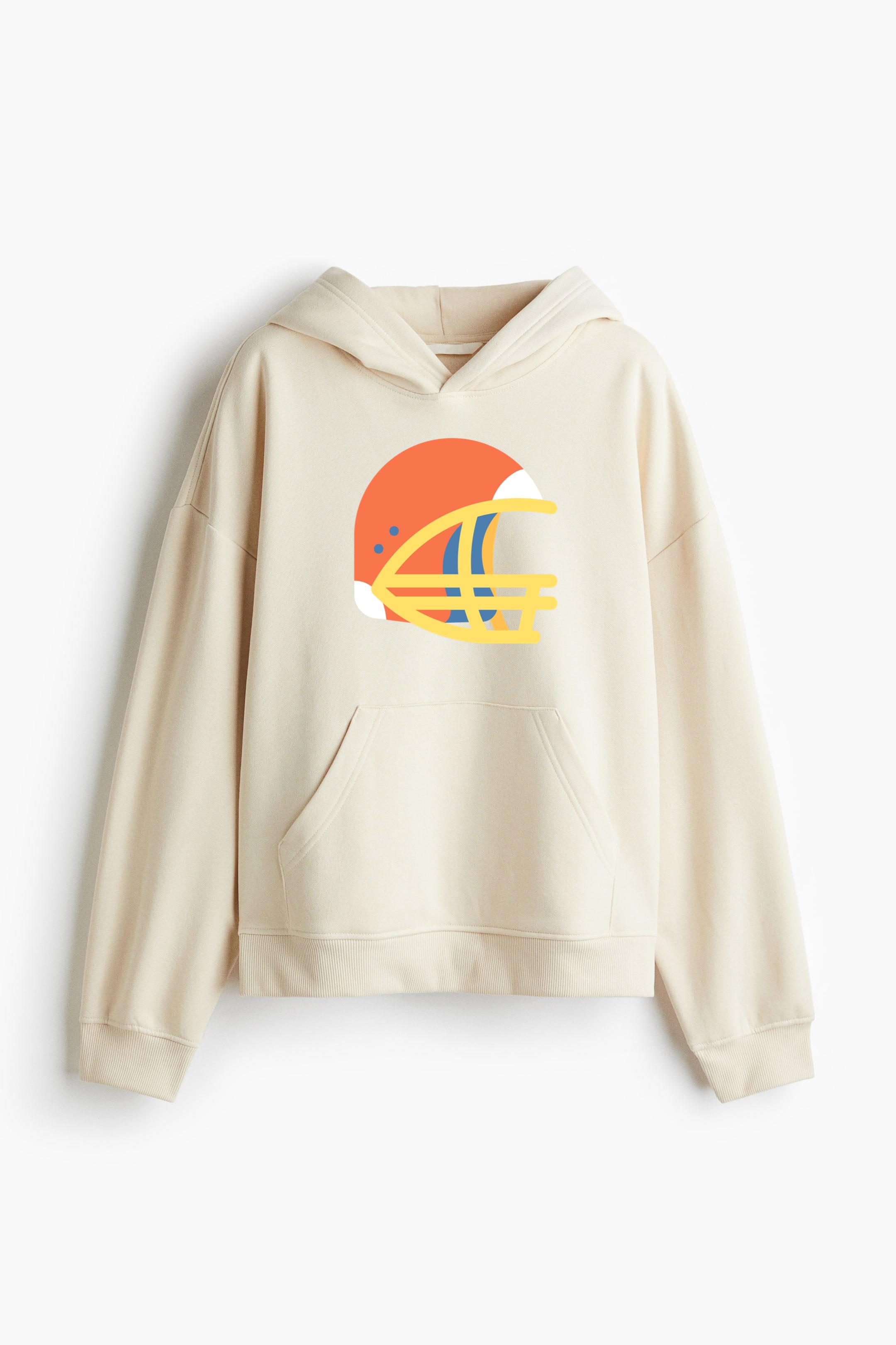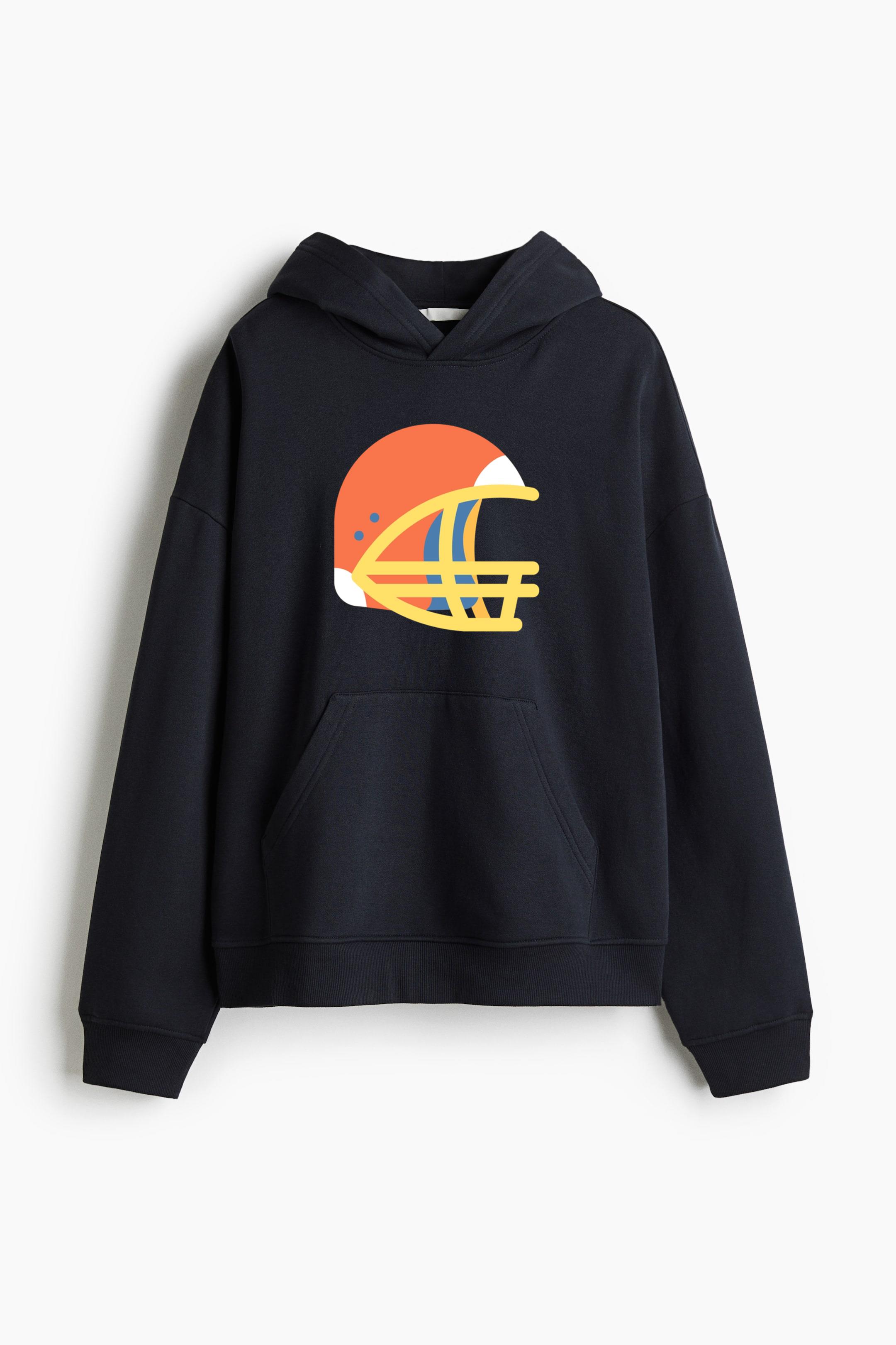American Football Helmet Icon American Football Oversized Fit Printed Hoodie Oversized Fit Printed Hoodie – Extra-Loose Cotton-Blend Sweatshirt with Graphic Print and Brushed Fleece Interior