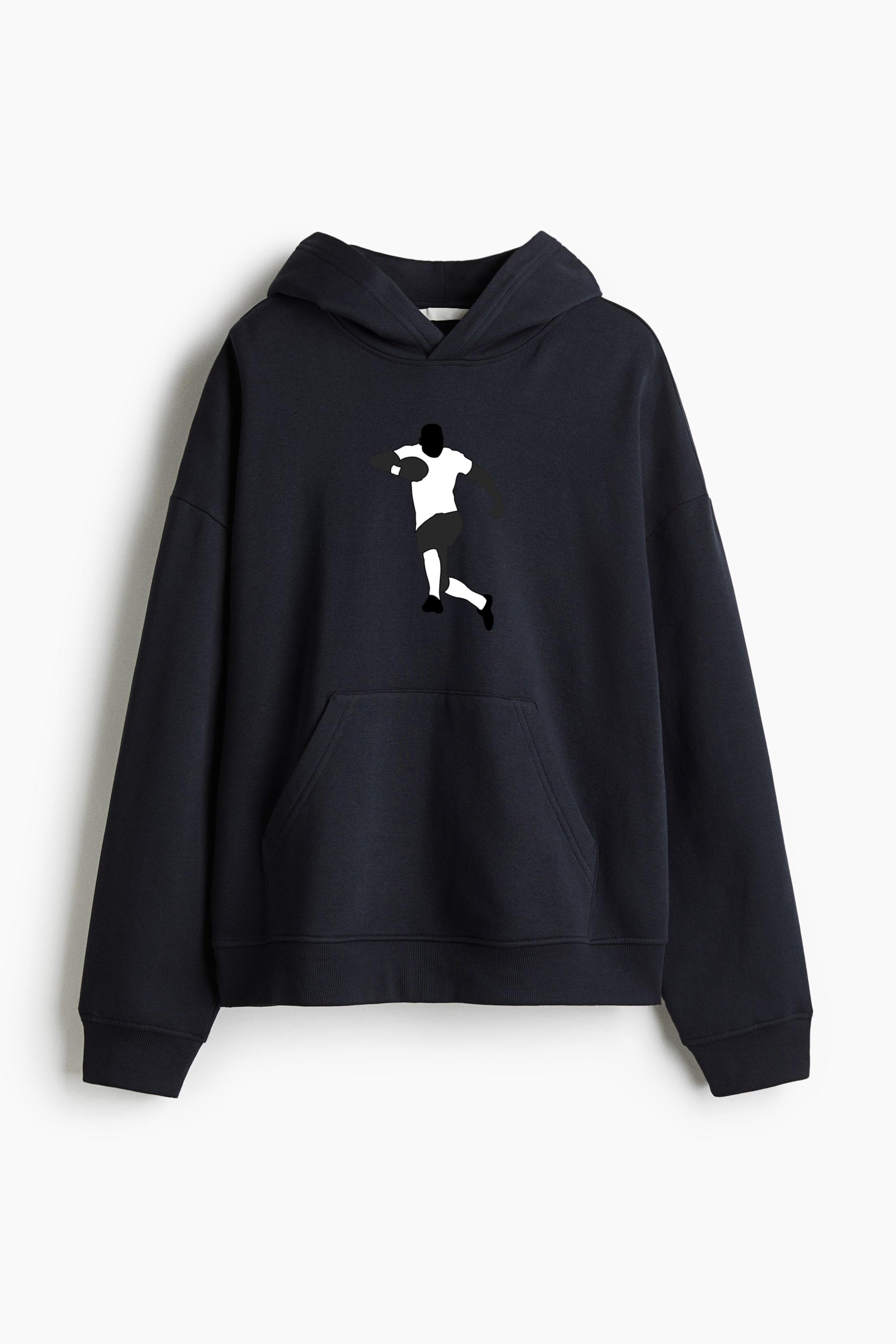 American Football Player Running Oversized Fit Printed Hoodie Oversized Fit Printed Hoodie – Extra-Loose Cotton-Blend Sweatshirt with Graphic Print and Brushed Fleece Interior
