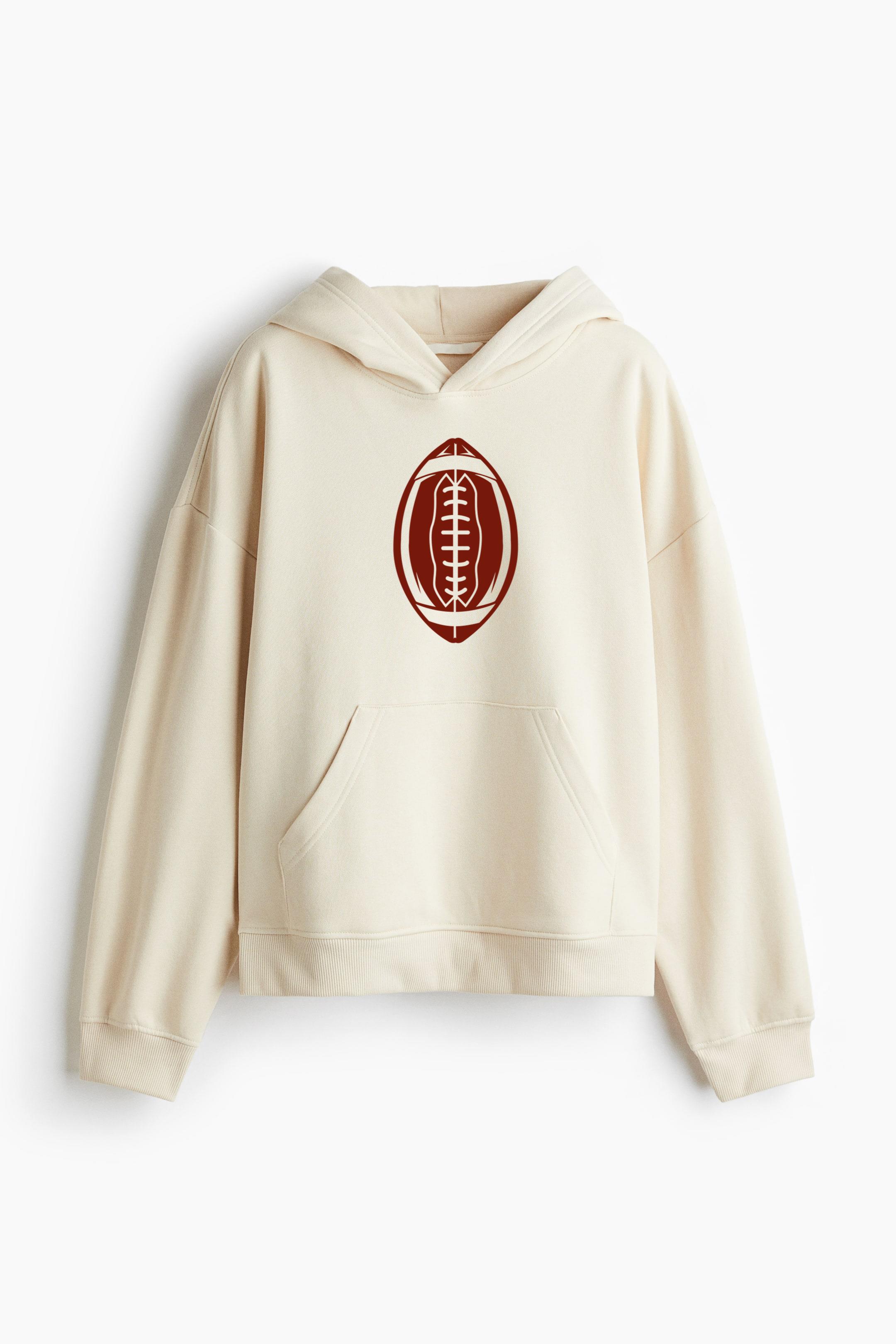 American Football Standing Cut Out Oversized Fit Printed Hoodie Oversized Fit Printed Hoodie – Extra-Loose Cotton-Blend Sweatshirt with Graphic Print and Brushed Fleece Interior