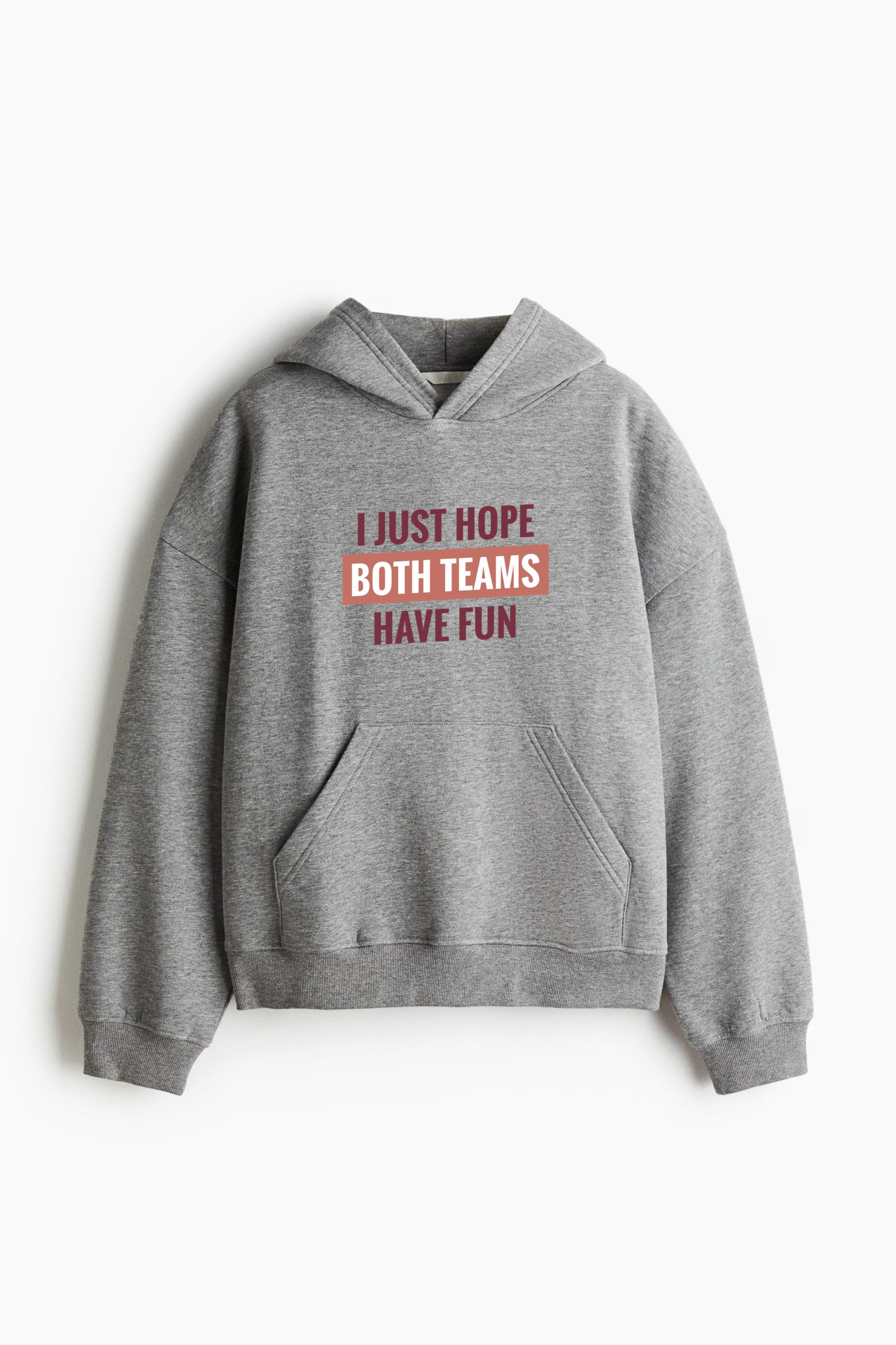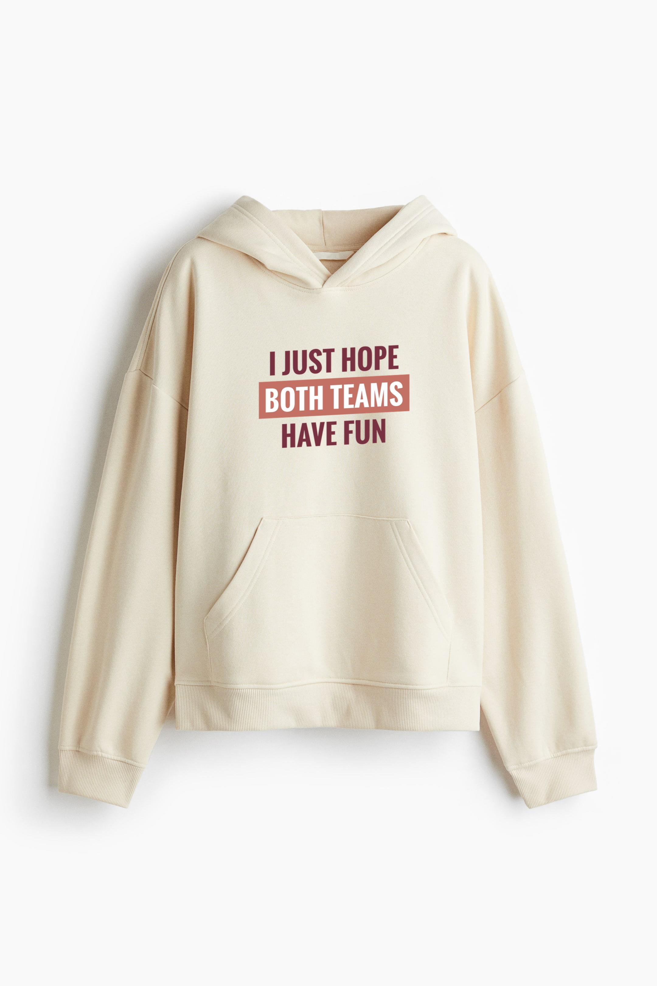 Both Teams Have Fun Lettering Oversized Fit Printed Hoodie Oversized Fit Printed Hoodie – Extra-Loose Cotton-Blend Sweatshirt with Graphic Print and Brushed Fleece Interior