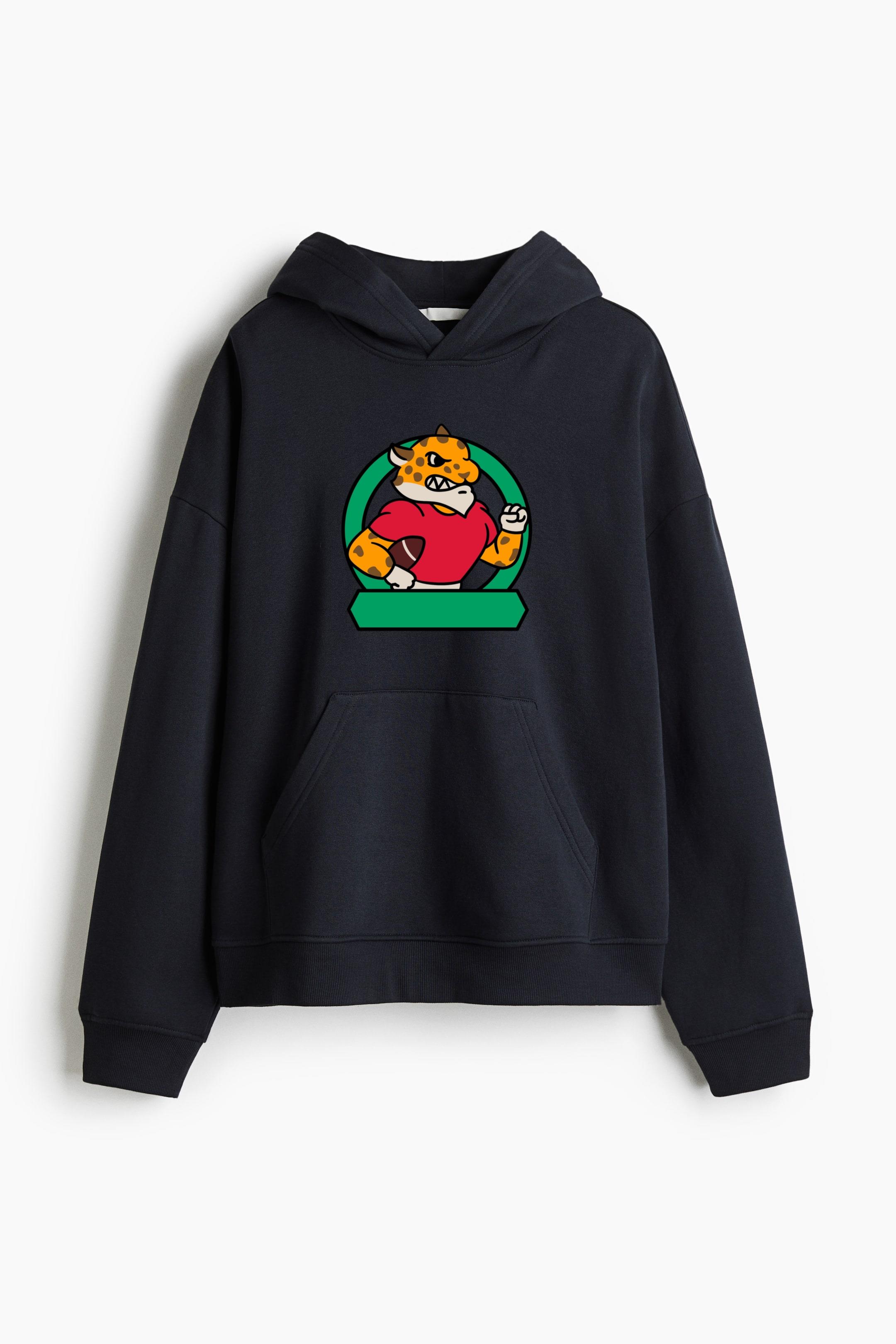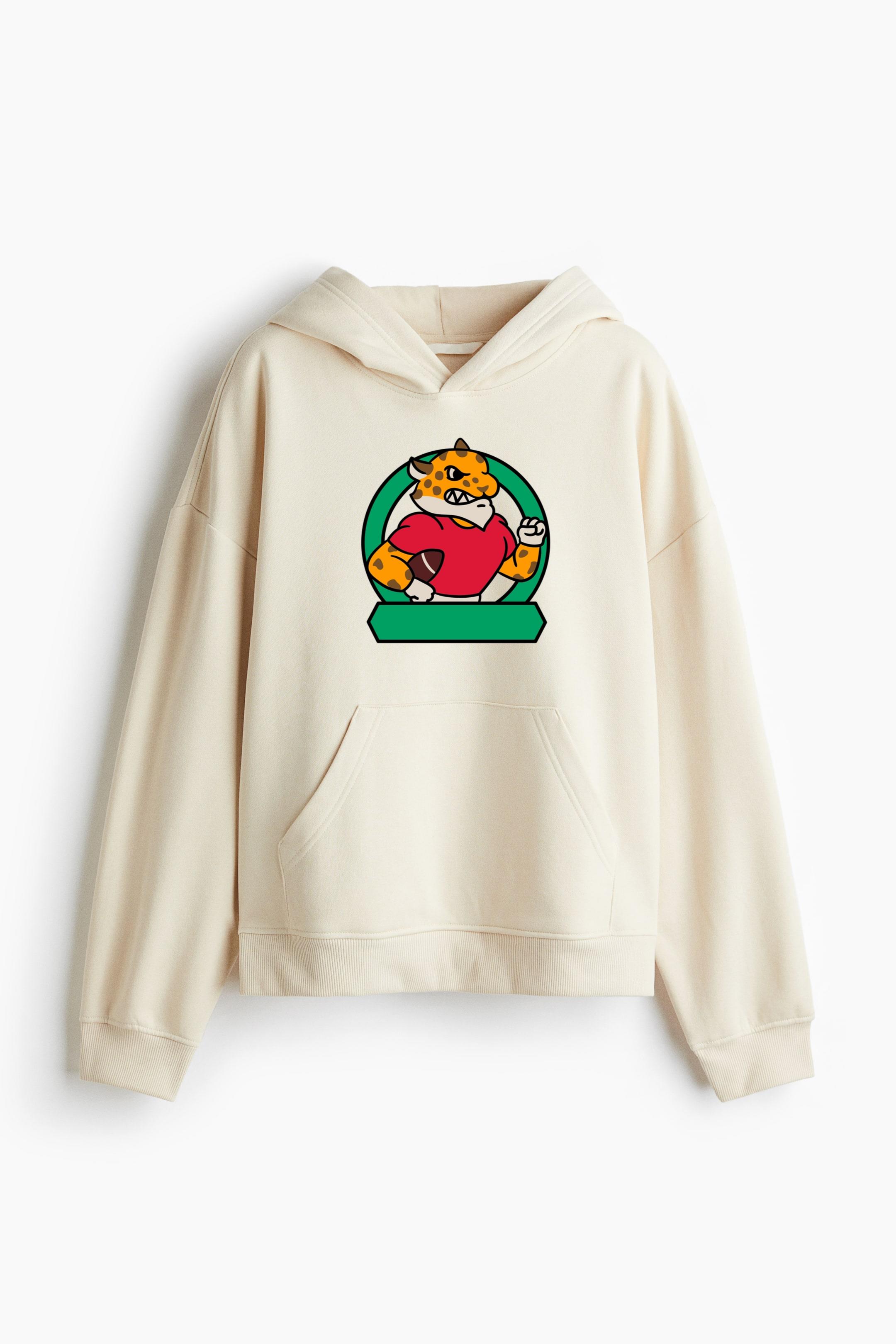 Cartoon Cheetah Holding A Football Oversized Fit Printed Hoodie Oversized Fit Printed Hoodie – Extra-Loose Cotton-Blend Sweatshirt with Graphic Print and Brushed Fleece Interior