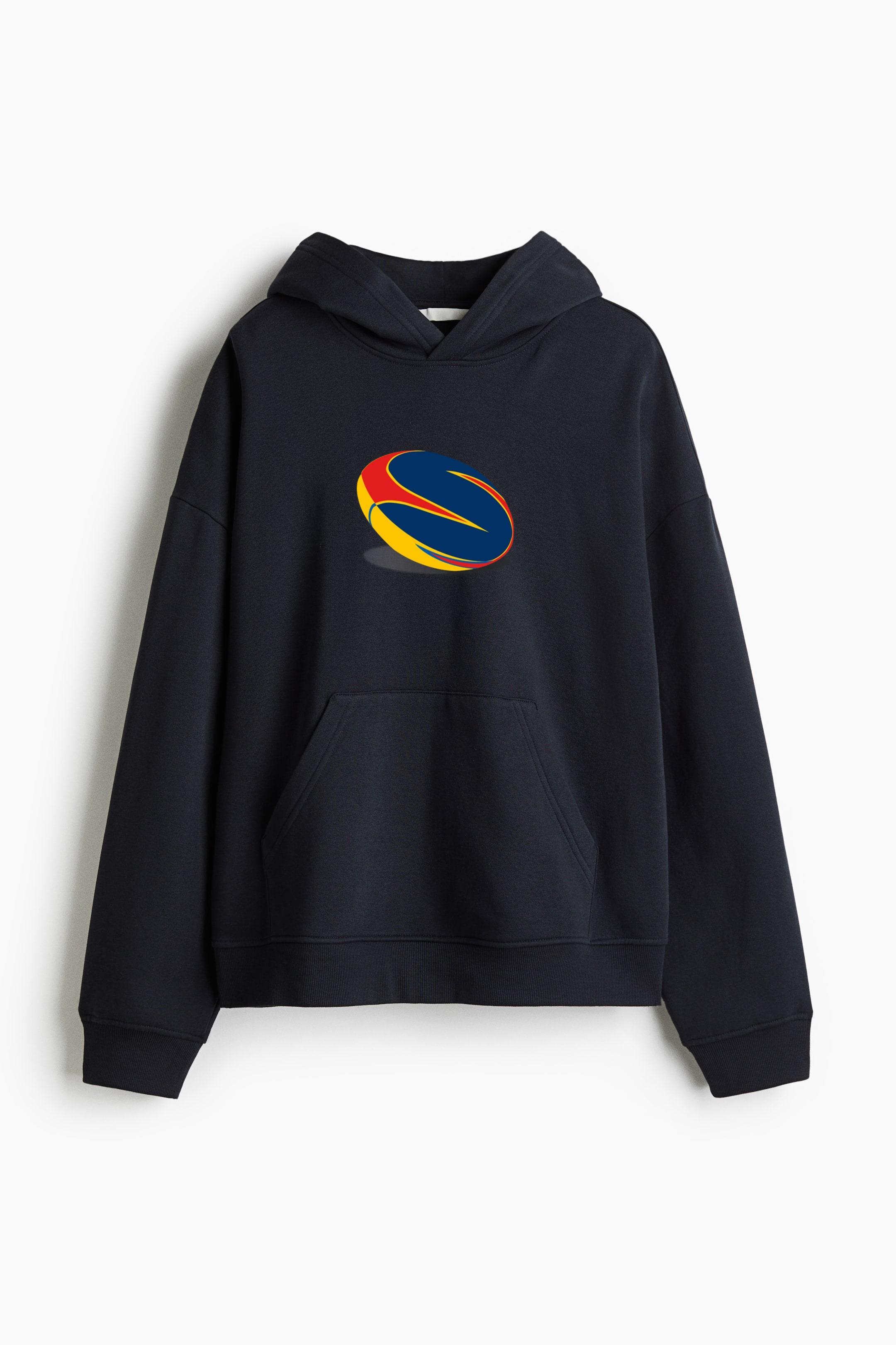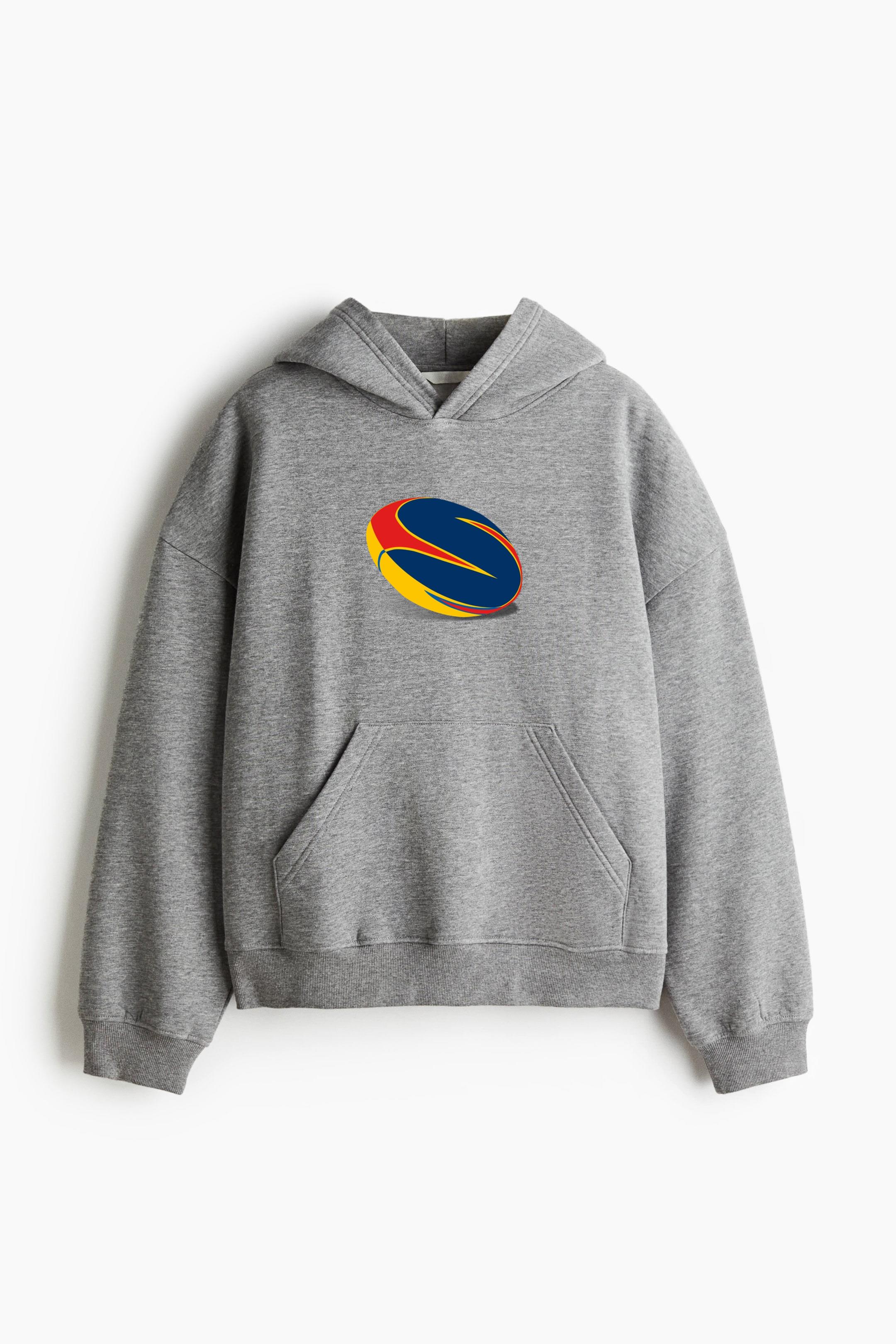 Make a bold statement in comfort with our Colorful Paints Rugby Ball Oversized Fit Printed Hoodie Oversized Fit Printed Hoodie. Crafted from a soft, medium-weight cotton blend, this sweatshirt hoodie features a graphic motif, heavily dropped shoulders, and a relaxed silhouette for effortless streetwear style.