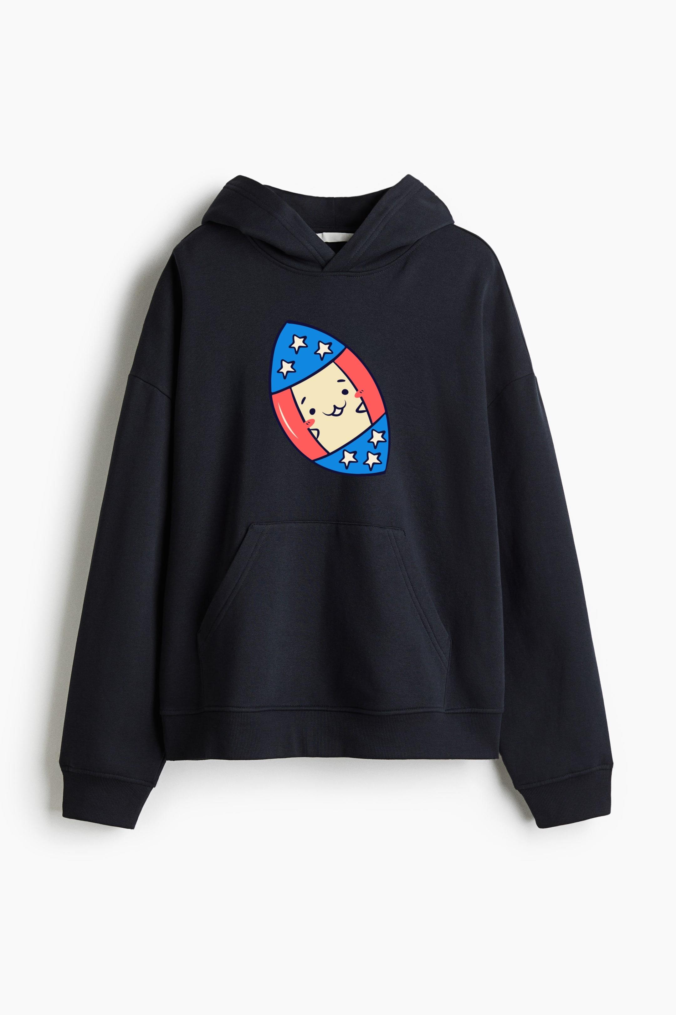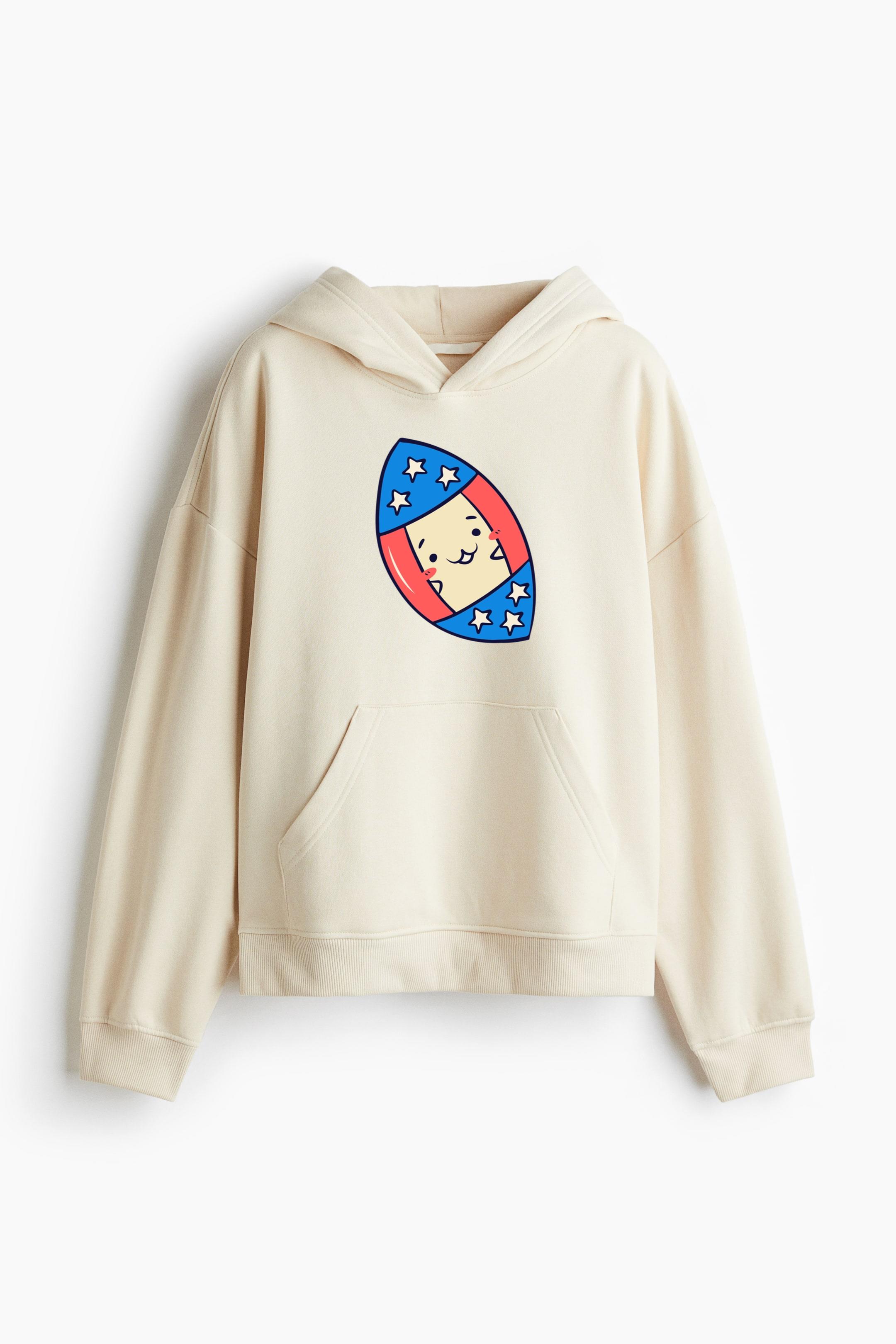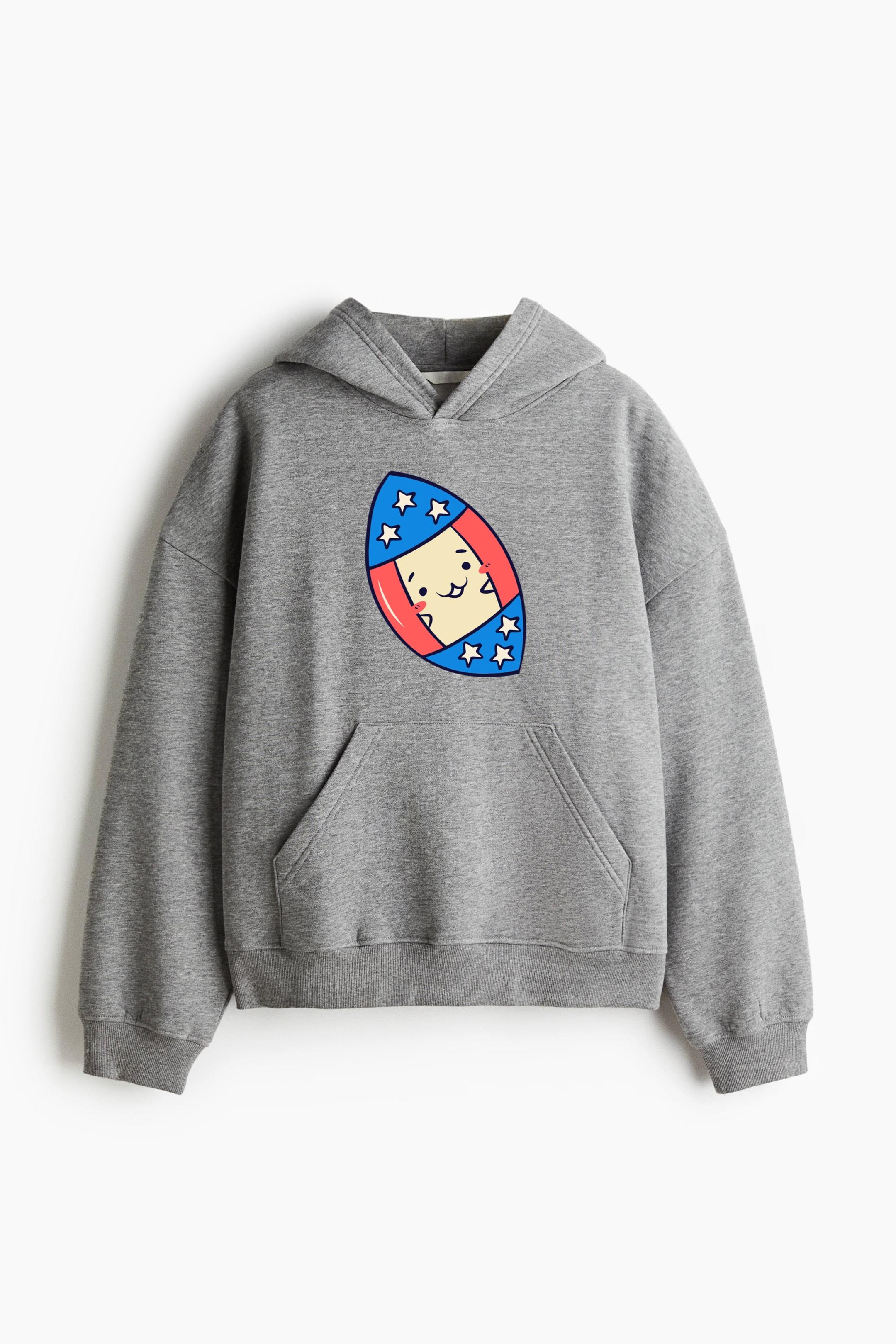 Cute American Football Oversized Fit Printed Hoodie Oversized Fit Printed Hoodie – Extra-Loose Cotton-Blend Sweatshirt with Graphic Print and Brushed Fleece Interior