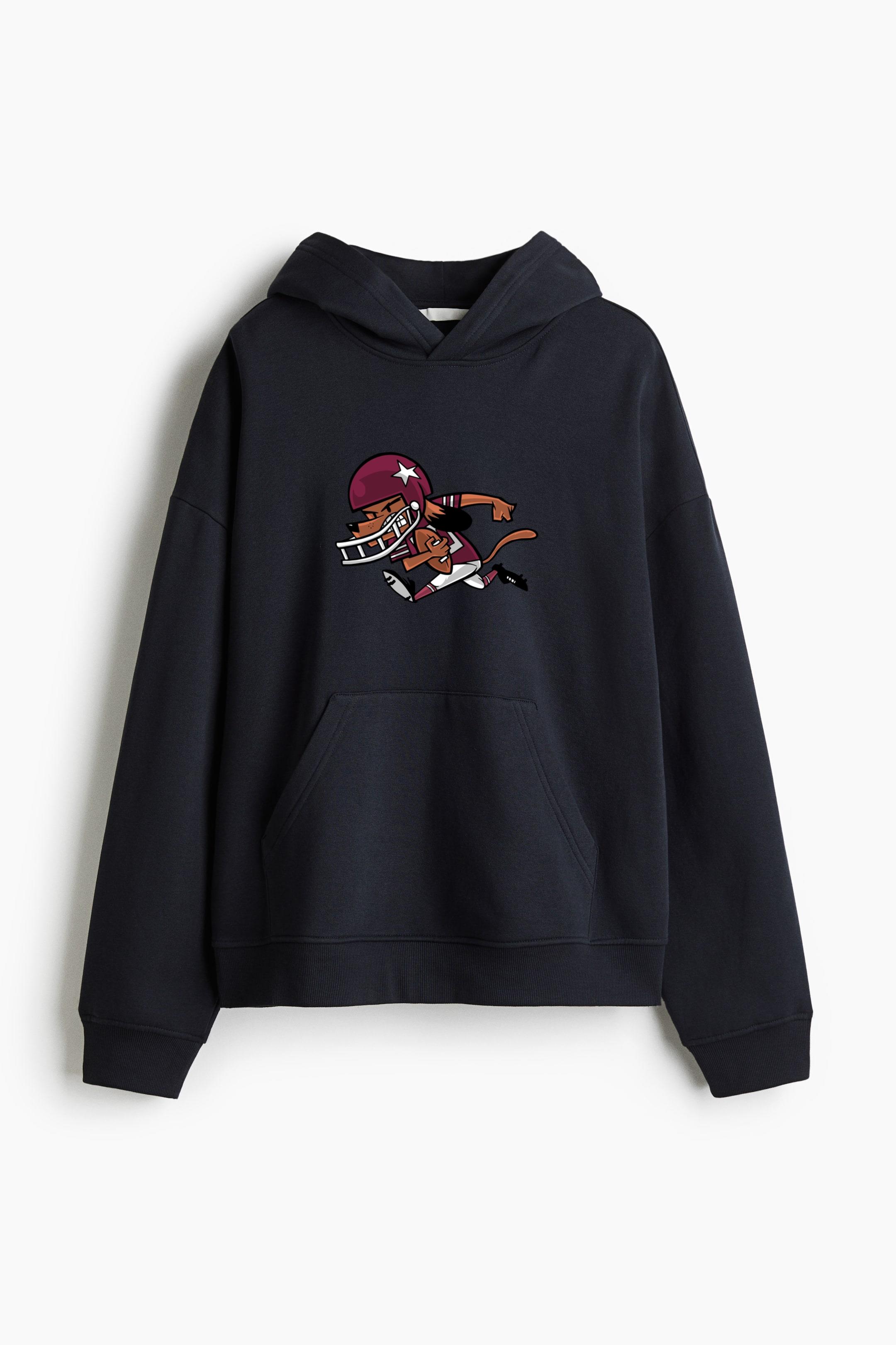 Dog American Football Oversized Fit Printed Hoodie Oversized Fit Printed Hoodie – Extra-Loose Cotton-Blend Sweatshirt with Graphic Print and Brushed Fleece Interior
