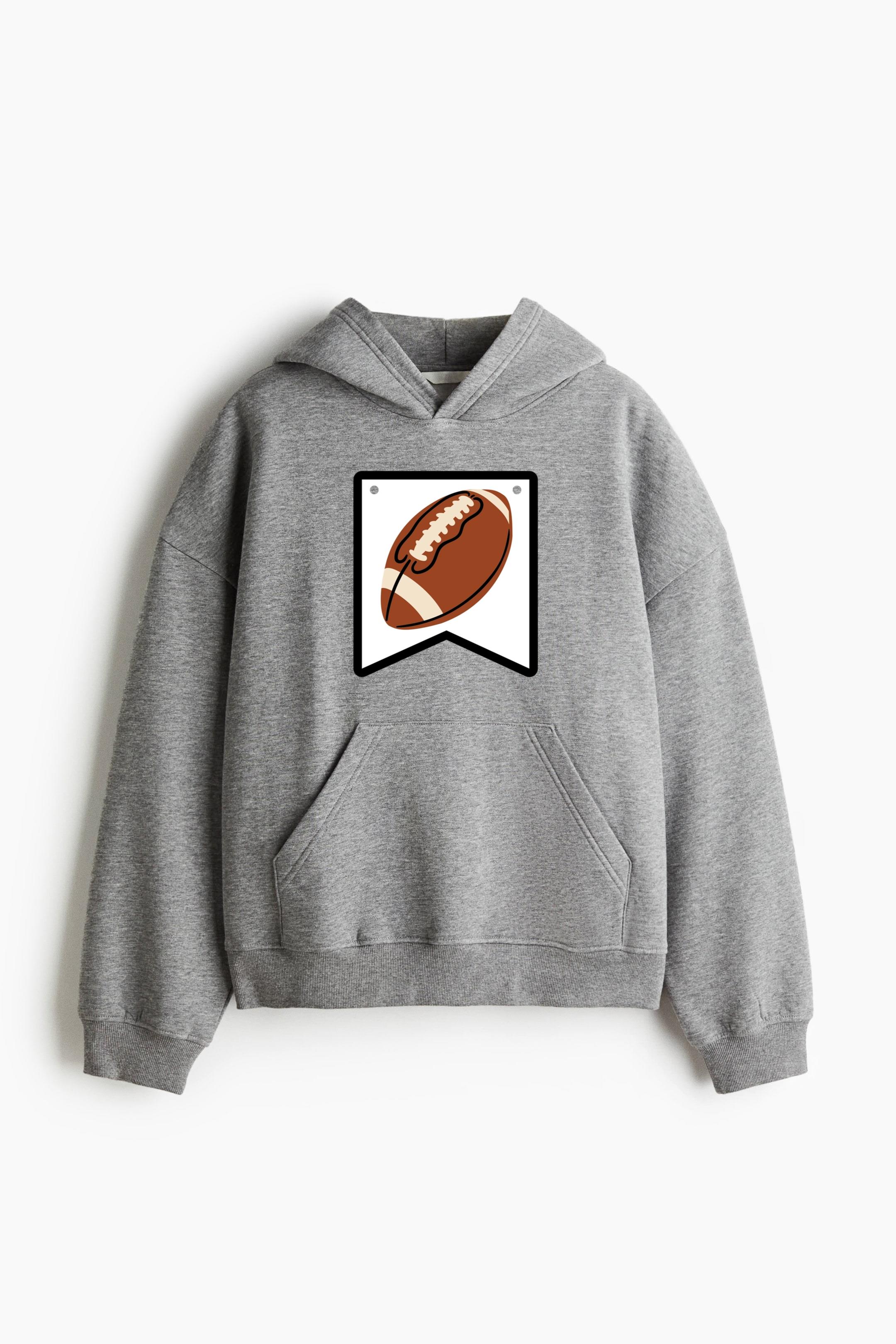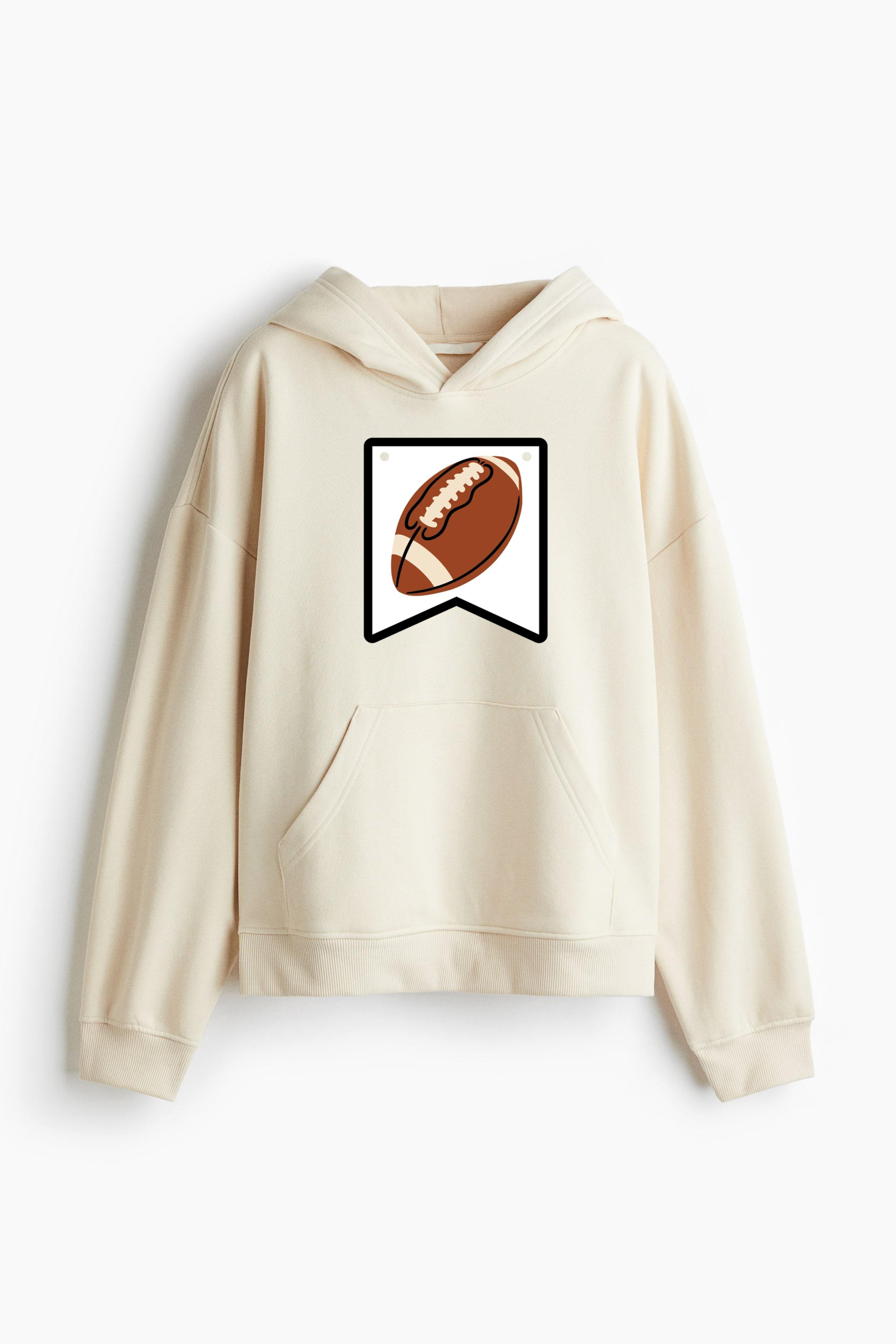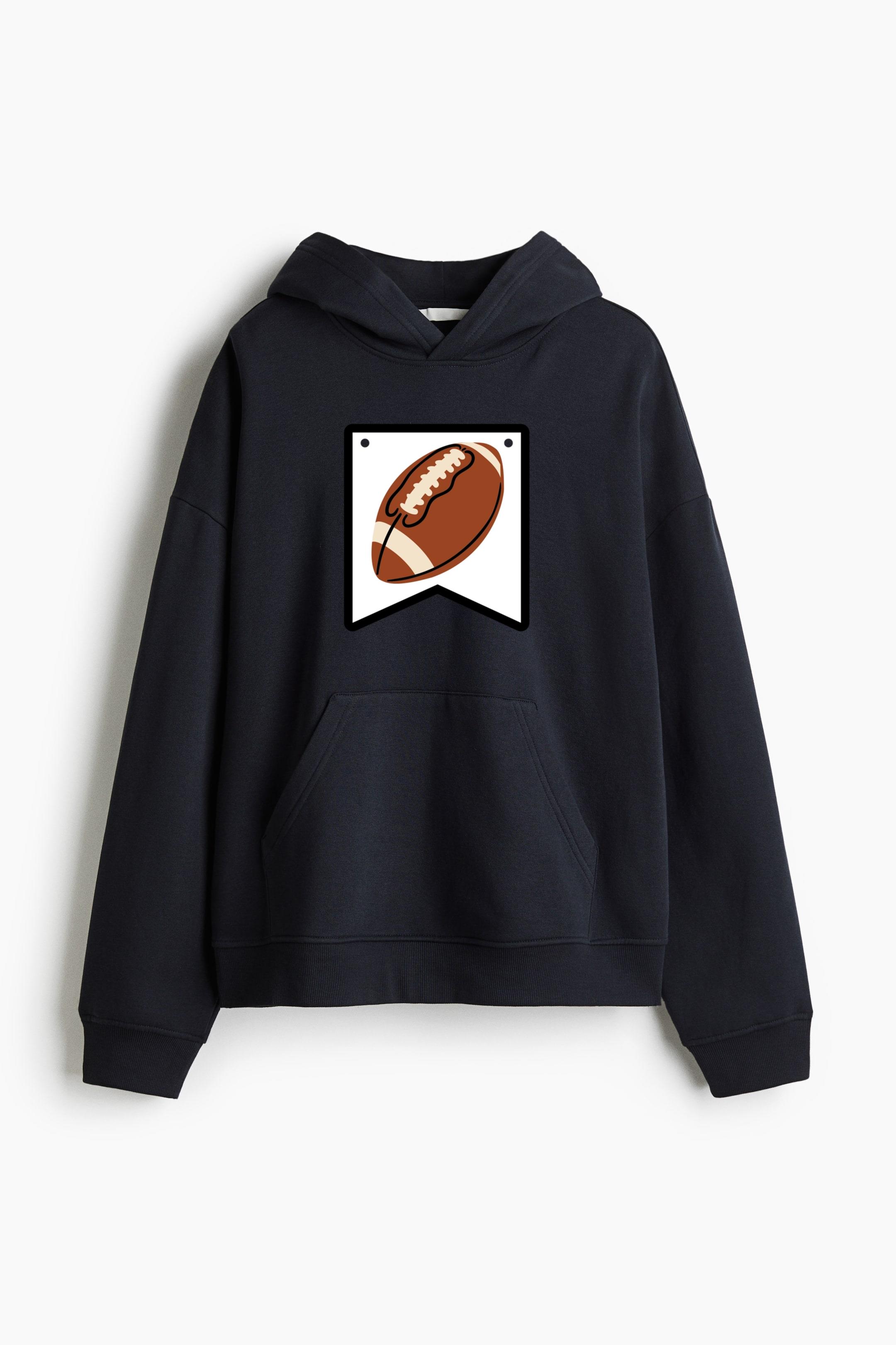 Football Ball Badge Flat Oversized Fit Printed Hoodie Oversized Fit Printed Hoodie – Extra-Loose Cotton-Blend Sweatshirt with Graphic Print and Brushed Fleece Interior