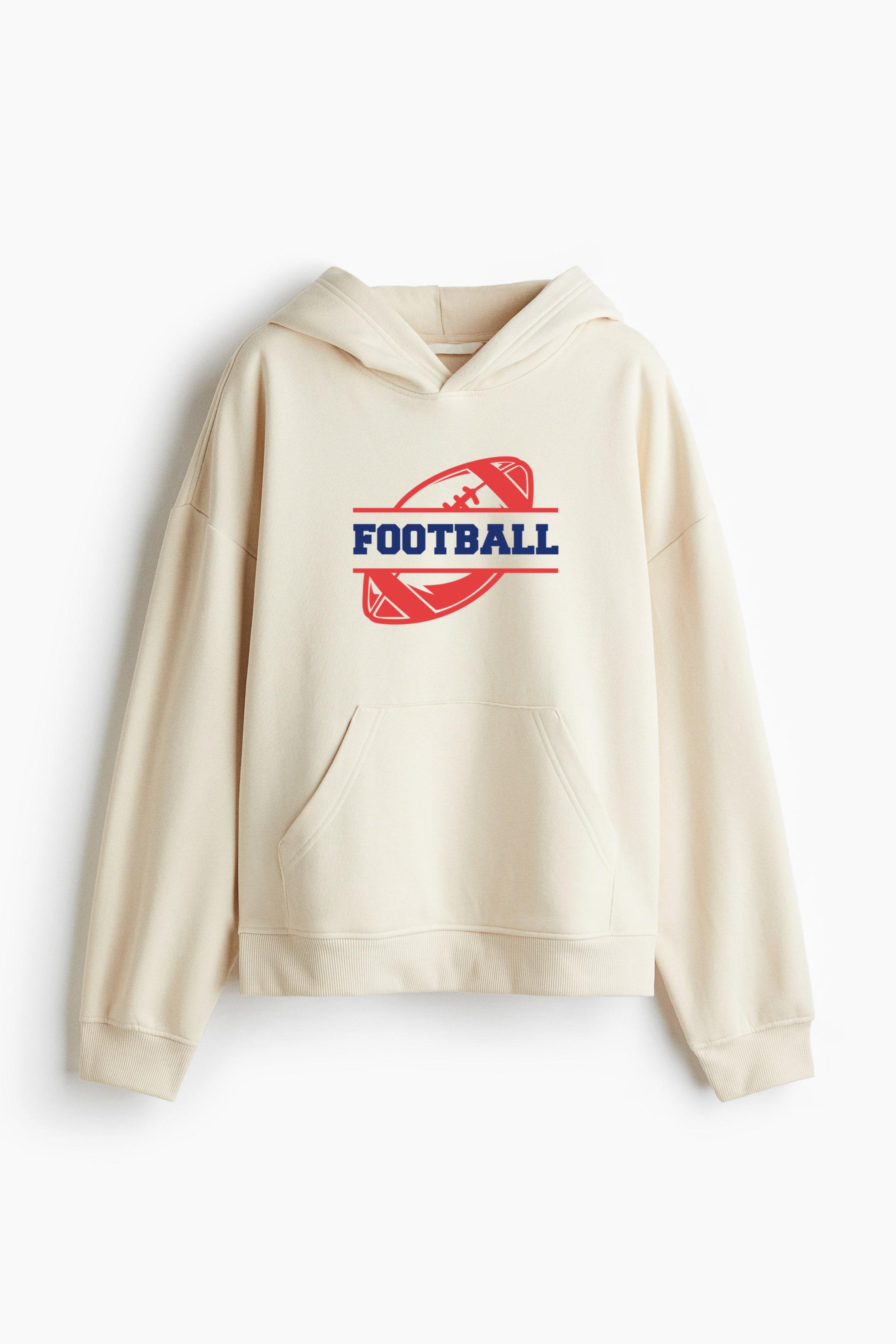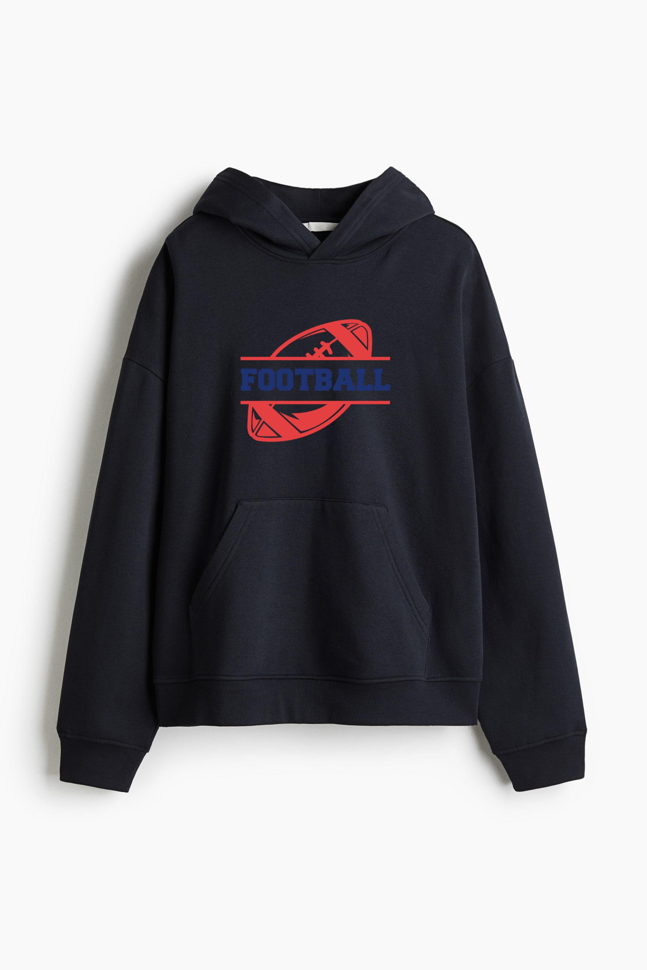 Make a bold statement in comfort with our Football Ball Badge Oversized Fit Printed Hoodie Oversized Fit Printed Hoodie. Crafted from a soft, medium-weight cotton blend, this sweatshirt hoodie features a graphic motif, heavily dropped shoulders, and a relaxed silhouette for effortless streetwear style.