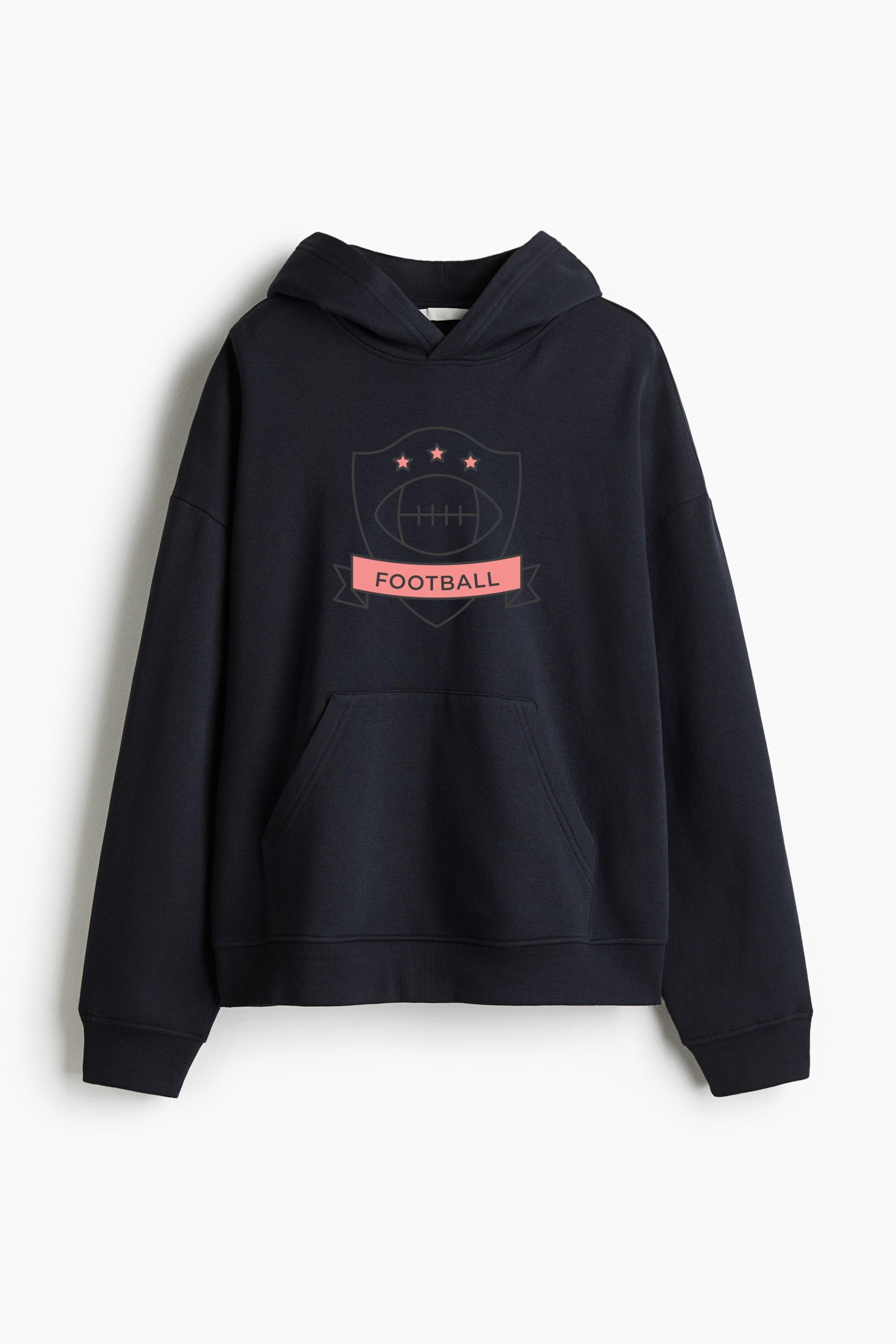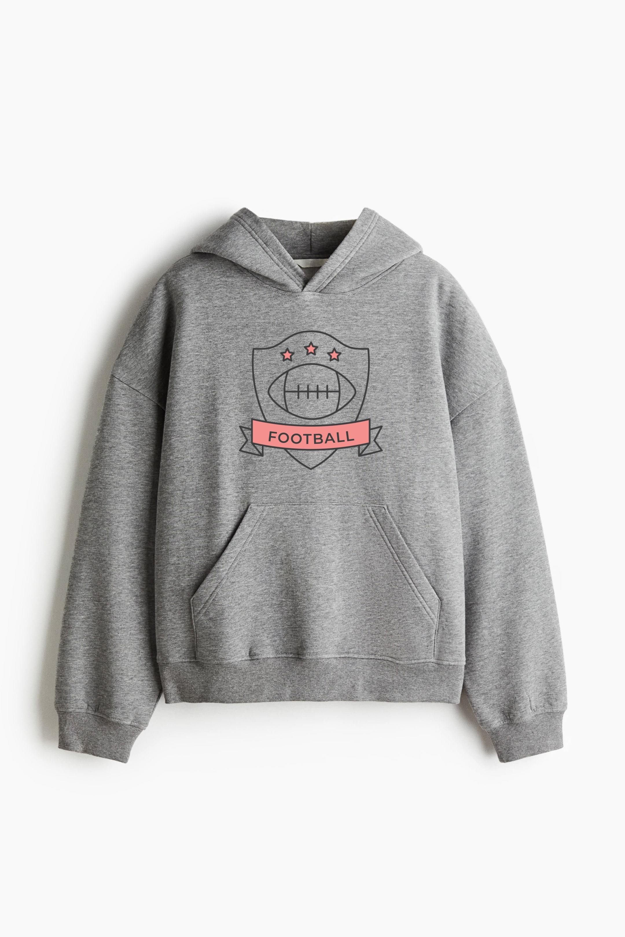 Football Ball Colored Badge Sticker Oversized Fit Printed Hoodie Oversized Fit Printed Hoodie – Extra-Loose Cotton-Blend Sweatshirt with Graphic Print and Brushed Fleece Interior
