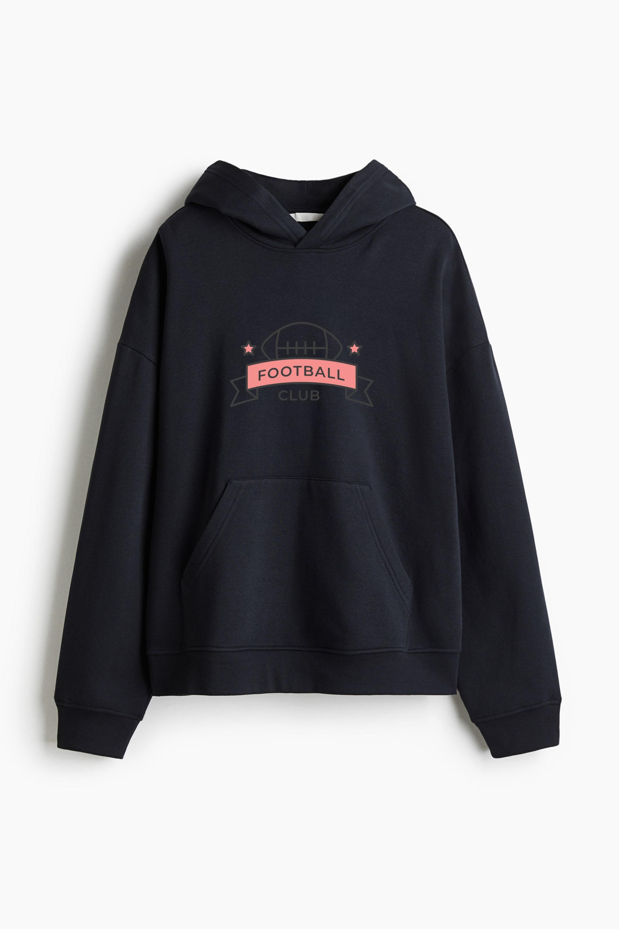 Make a bold statement in comfort with our Football Club Ball Star Colored Badge Sticker Oversized Fit Printed Hoodie Oversized Fit Printed Hoodie. Crafted from a soft, medium-weight cotton blend, this sweatshirt hoodie features a graphic motif, heavily dropped shoulders, and a relaxed silhouette for effortless streetwear style.