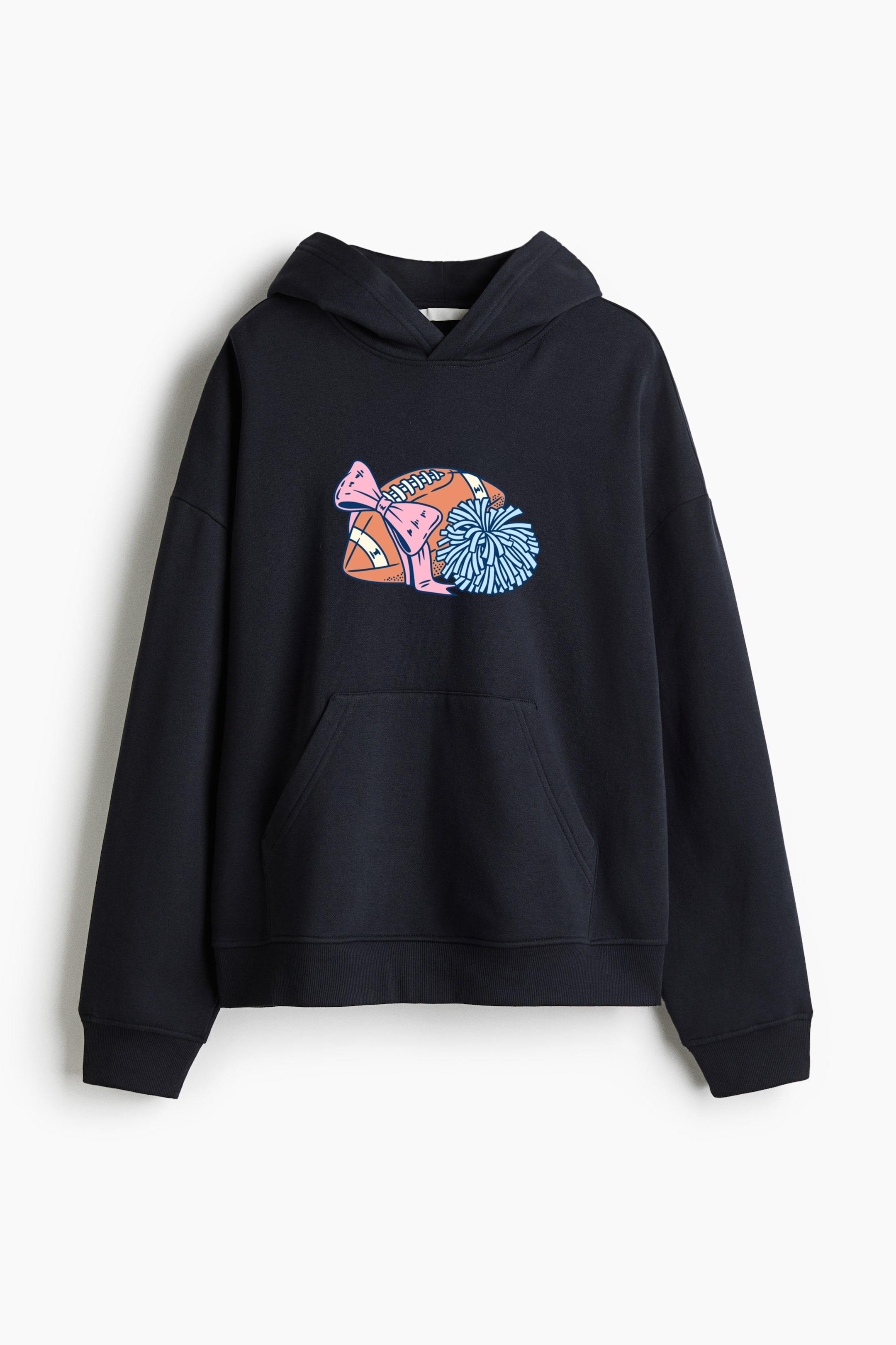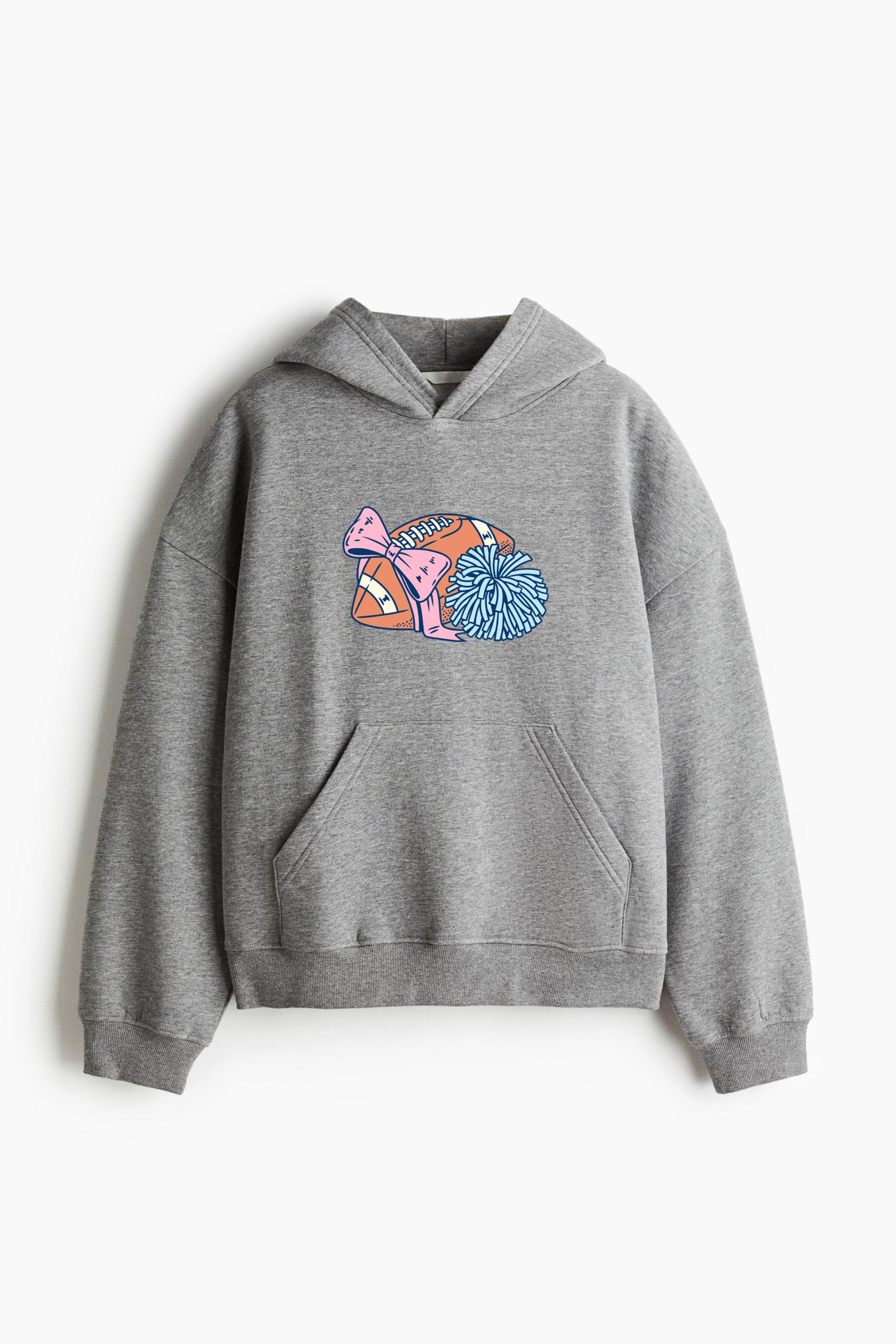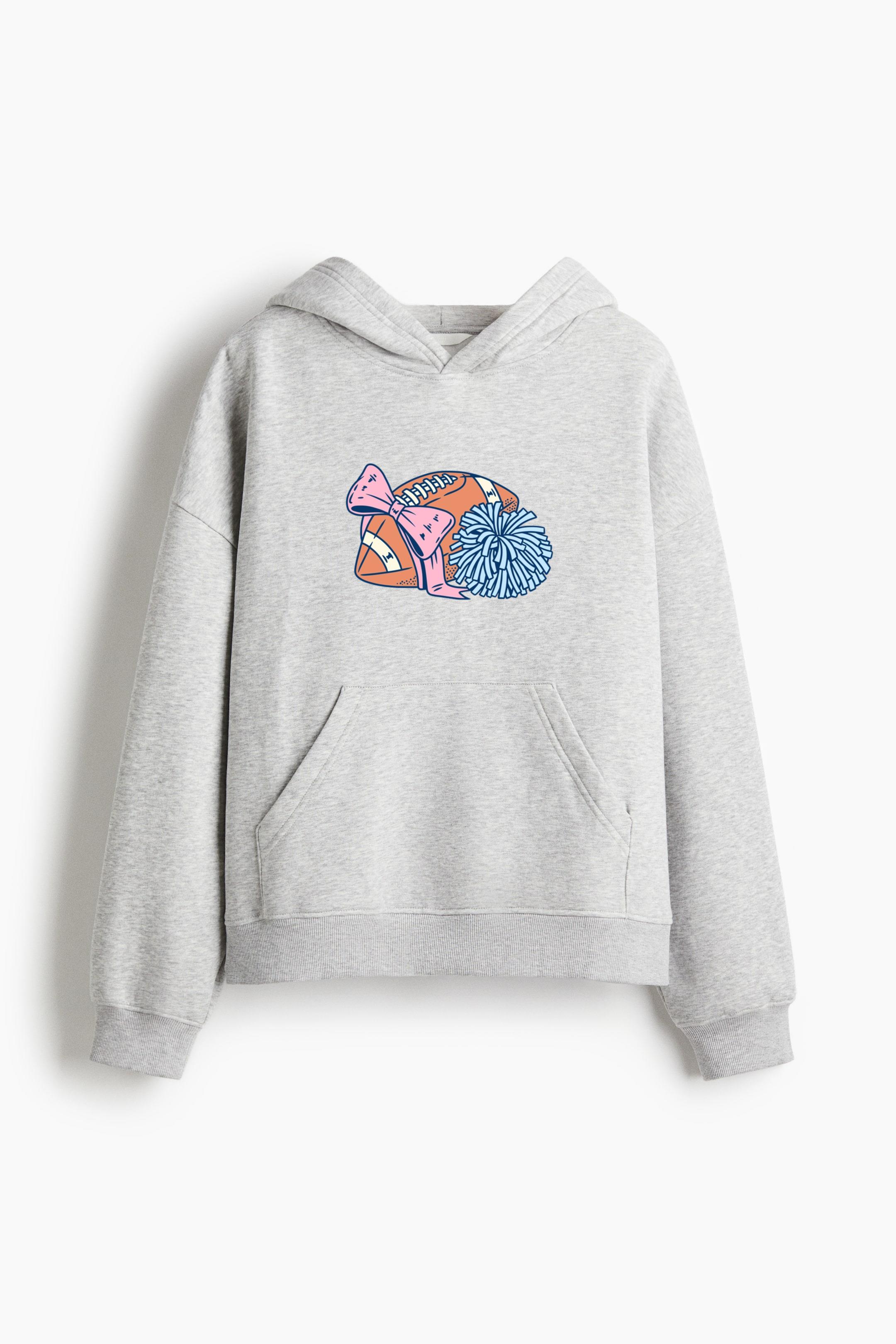 Football Design With Pink Bow Oversized Fit Printed Hoodie Oversized Fit Printed Hoodie – Extra-Loose Cotton-Blend Sweatshirt with Graphic Print and Brushed Fleece Interior