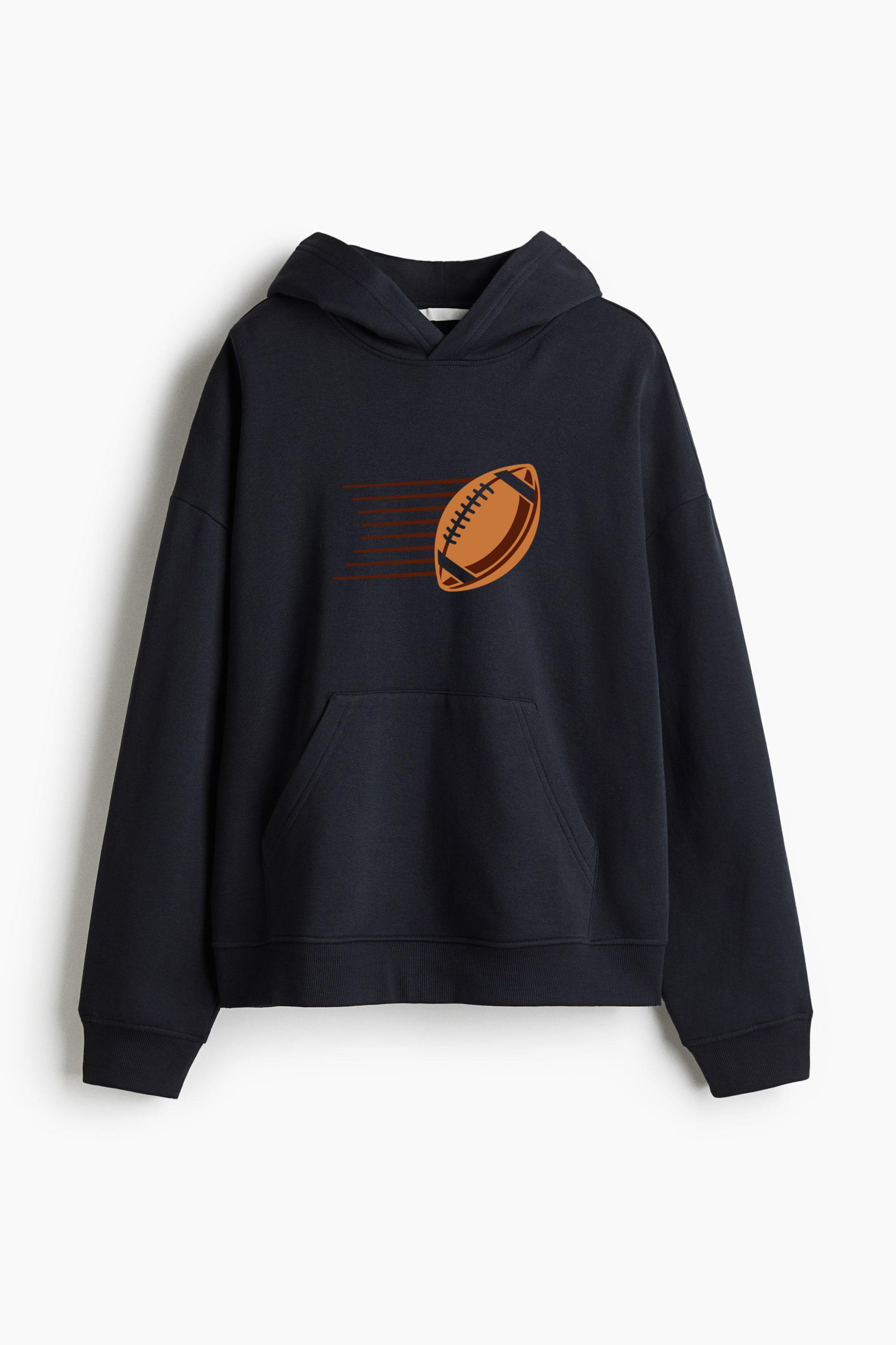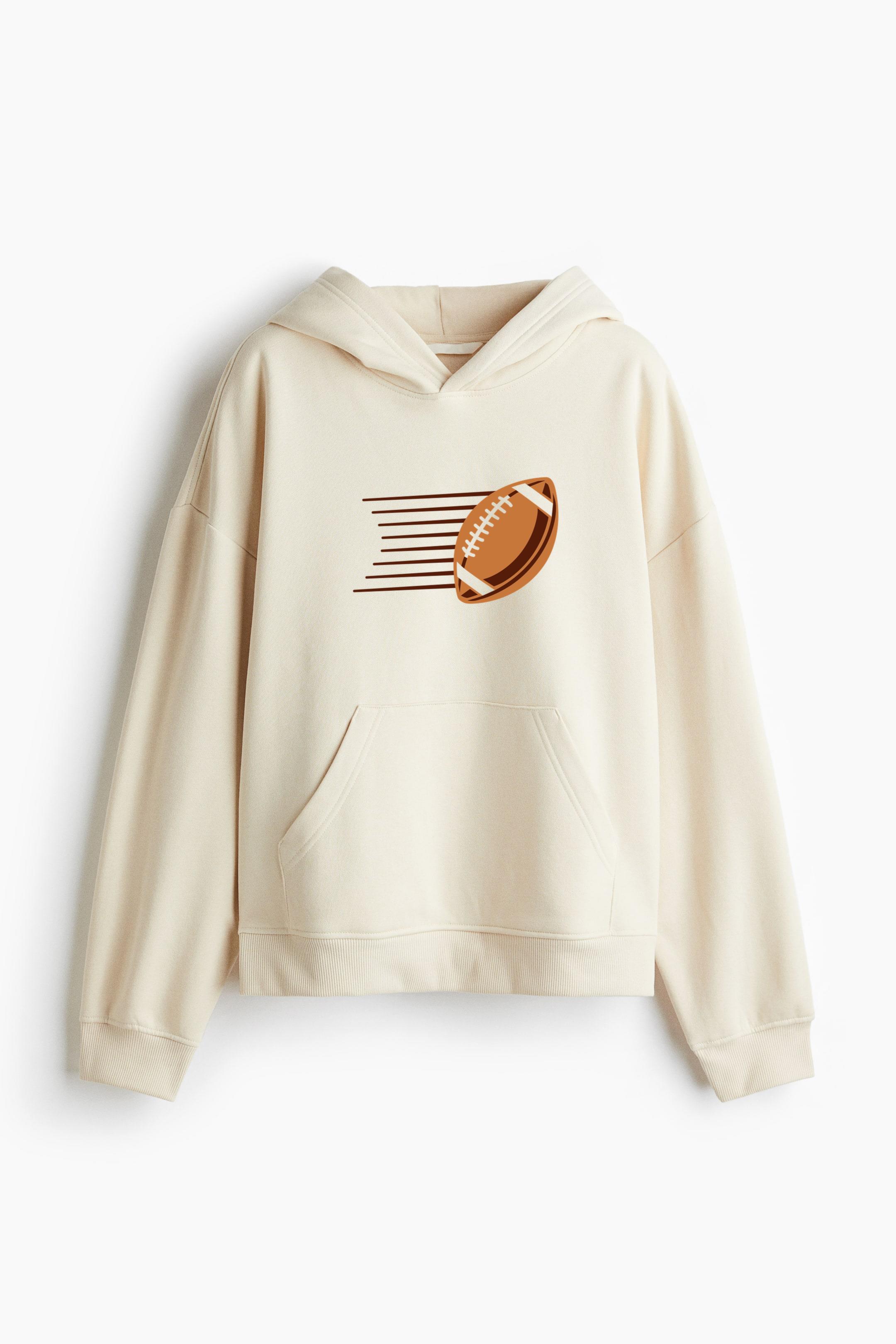 Football Flying In The Air Oversized Fit Printed Hoodie Oversized Fit Printed Hoodie – Extra-Loose Cotton-Blend Sweatshirt with Graphic Print and Brushed Fleece Interior