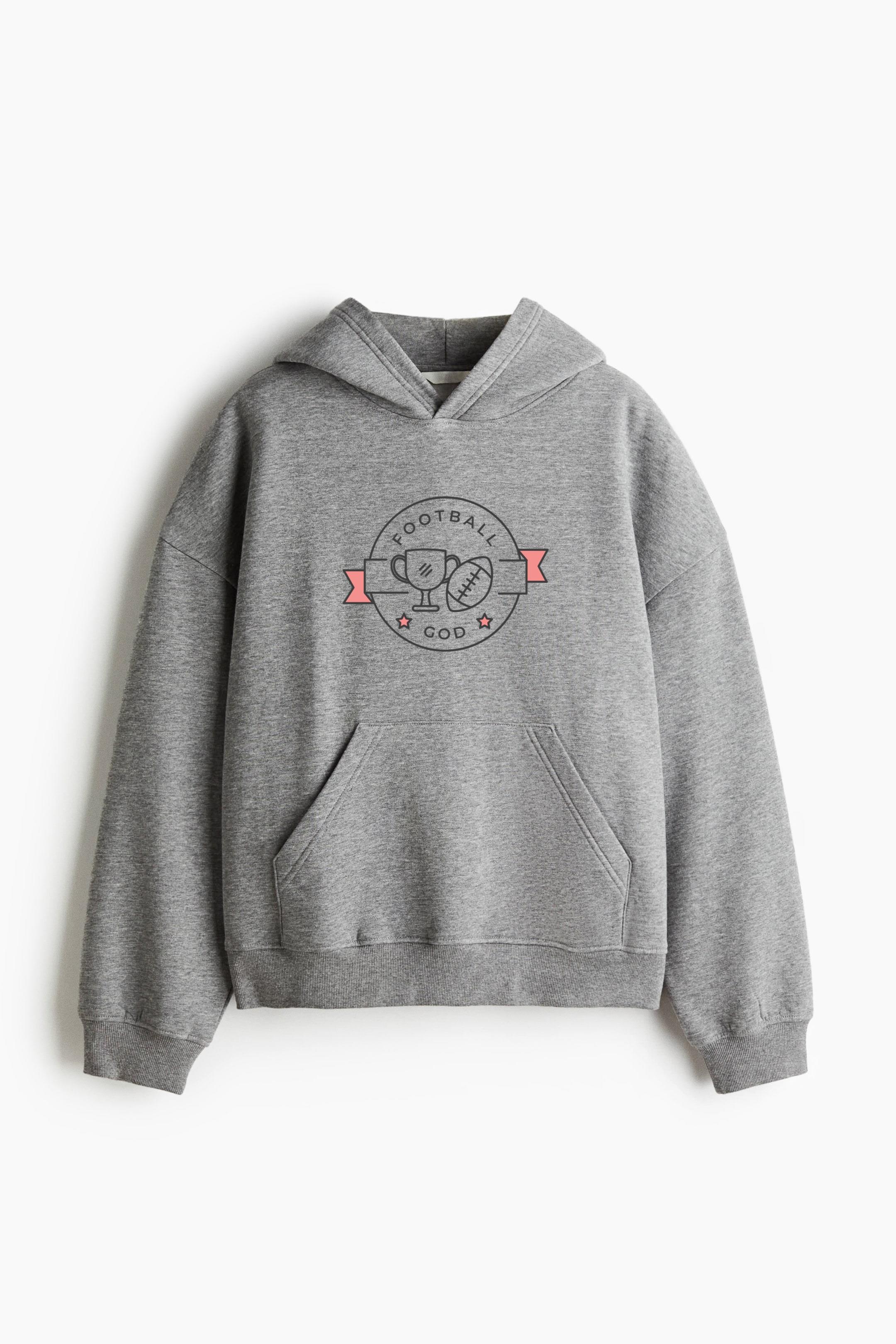 Football God Cup Ball Star Colored Badge Sticker Oversized Fit Printed Hoodie Oversized Fit Printed Hoodie – Extra-Loose Cotton-Blend Sweatshirt with Graphic Print and Brushed Fleece Interior