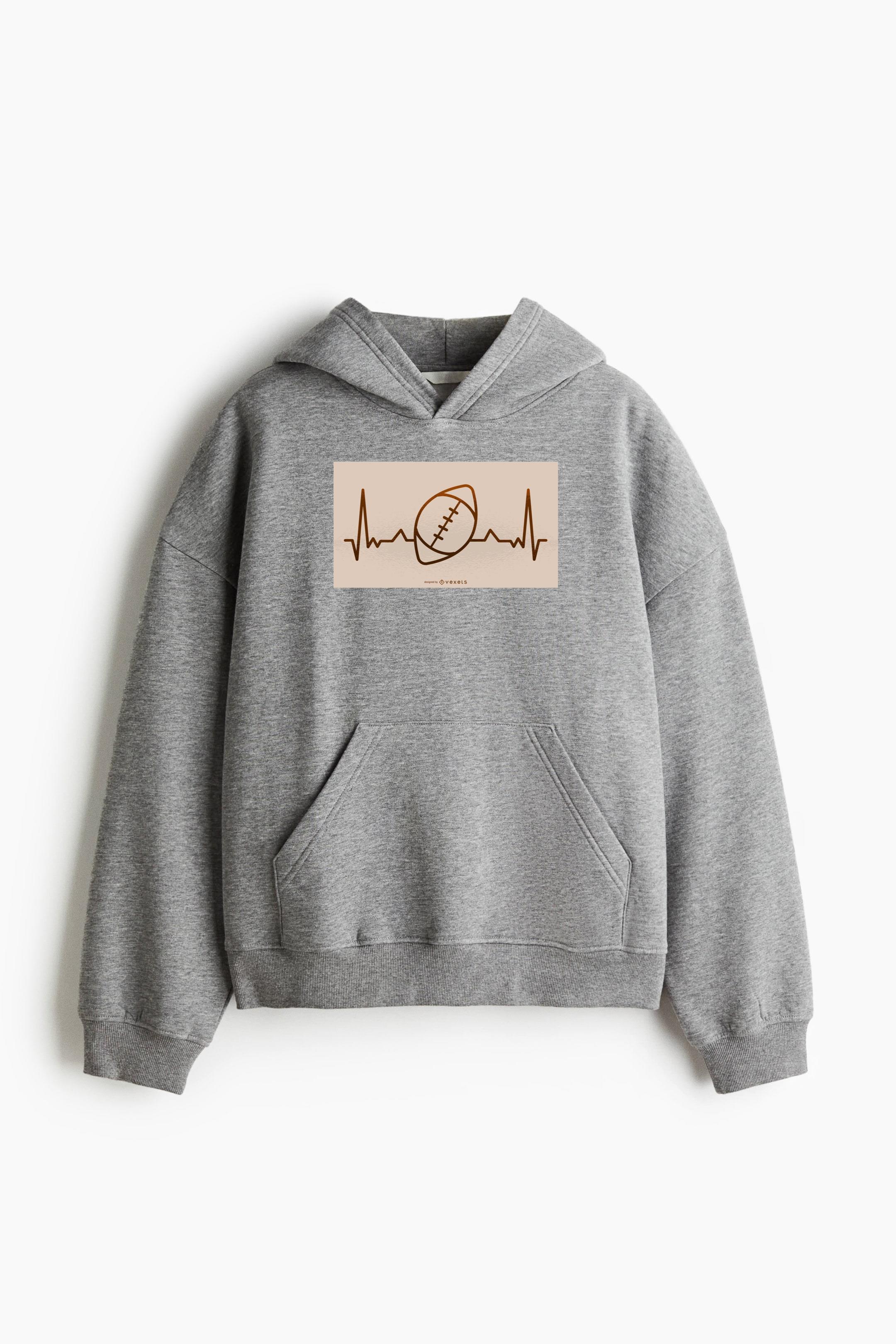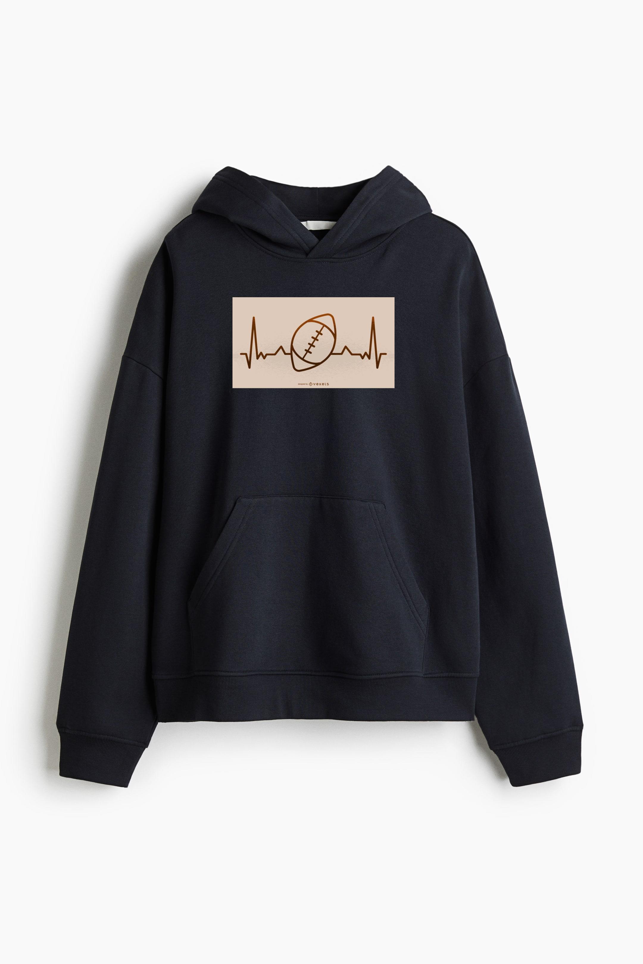Football Heartbeat Illustration Oversized Fit Printed Hoodie Oversized Fit Printed Hoodie – Extra-Loose Cotton-Blend Sweatshirt with Graphic Print and Brushed Fleece Interior
