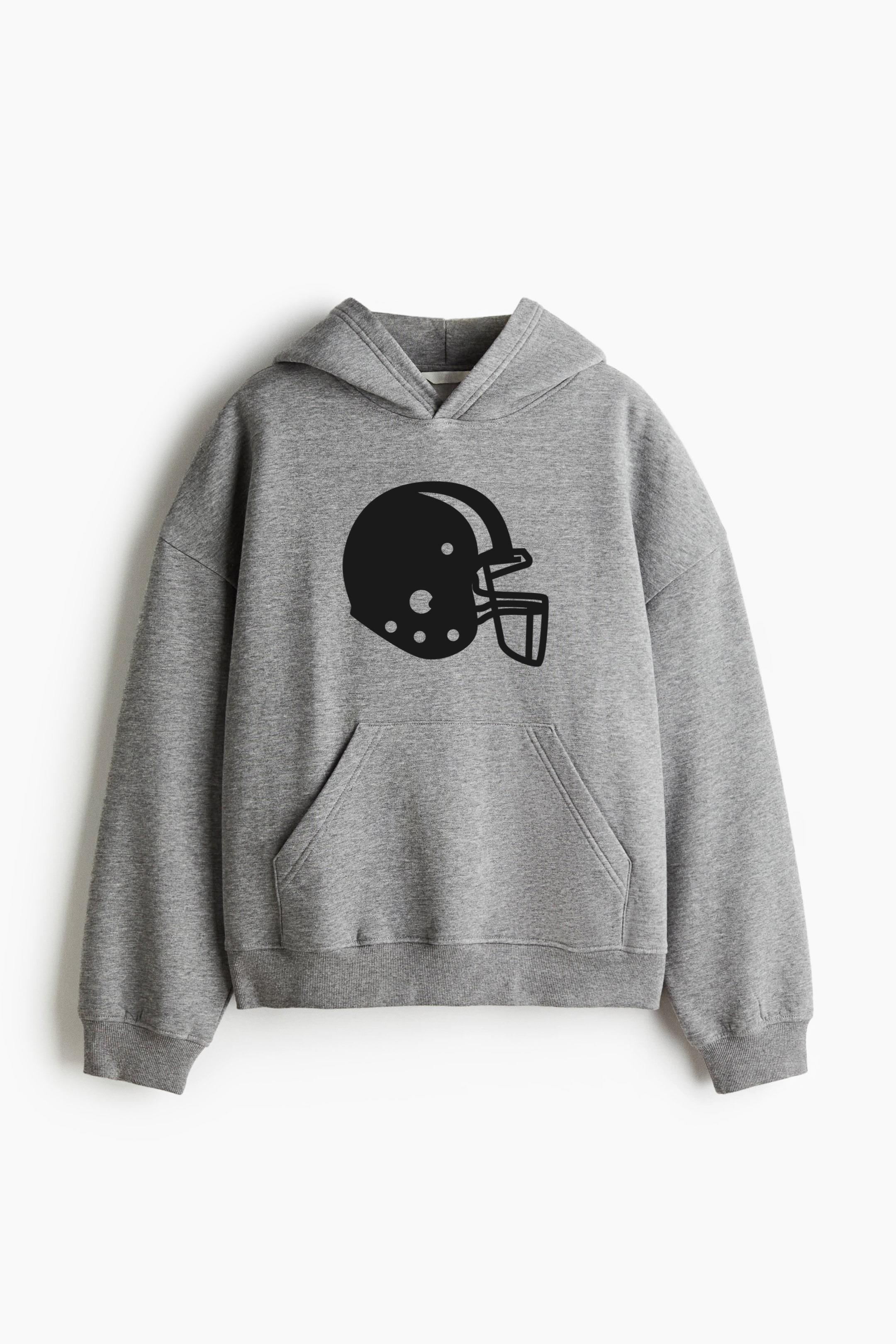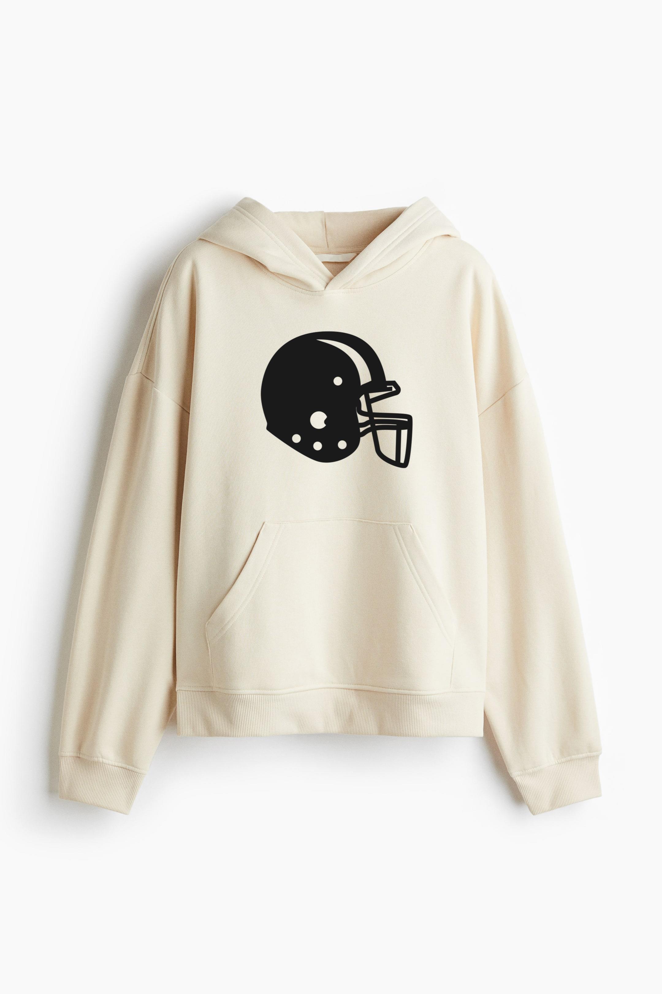 Football Helmet Cut Out Oversized Fit Printed Hoodie Oversized Fit Printed Hoodie – Extra-Loose Cotton-Blend Sweatshirt with Graphic Print and Brushed Fleece Interior