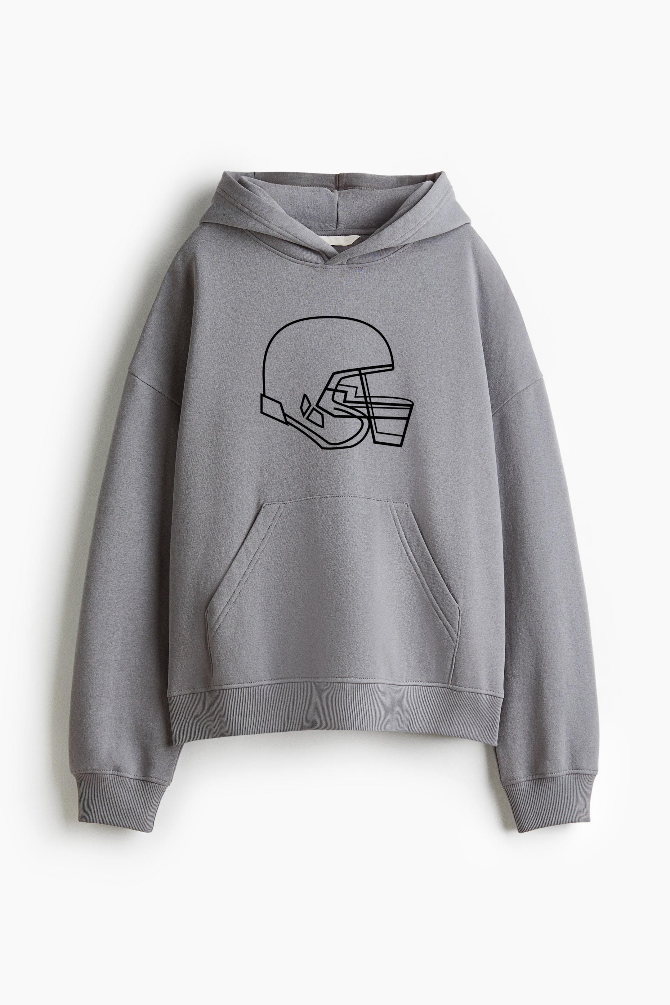 Stroke Football Helmet Oversized Fit Printed Hoodie Oversized Fit Printed Hoodie – Extra-Loose Cotton-Blend Sweatshirt with Graphic Print and Brushed Fleece Interior