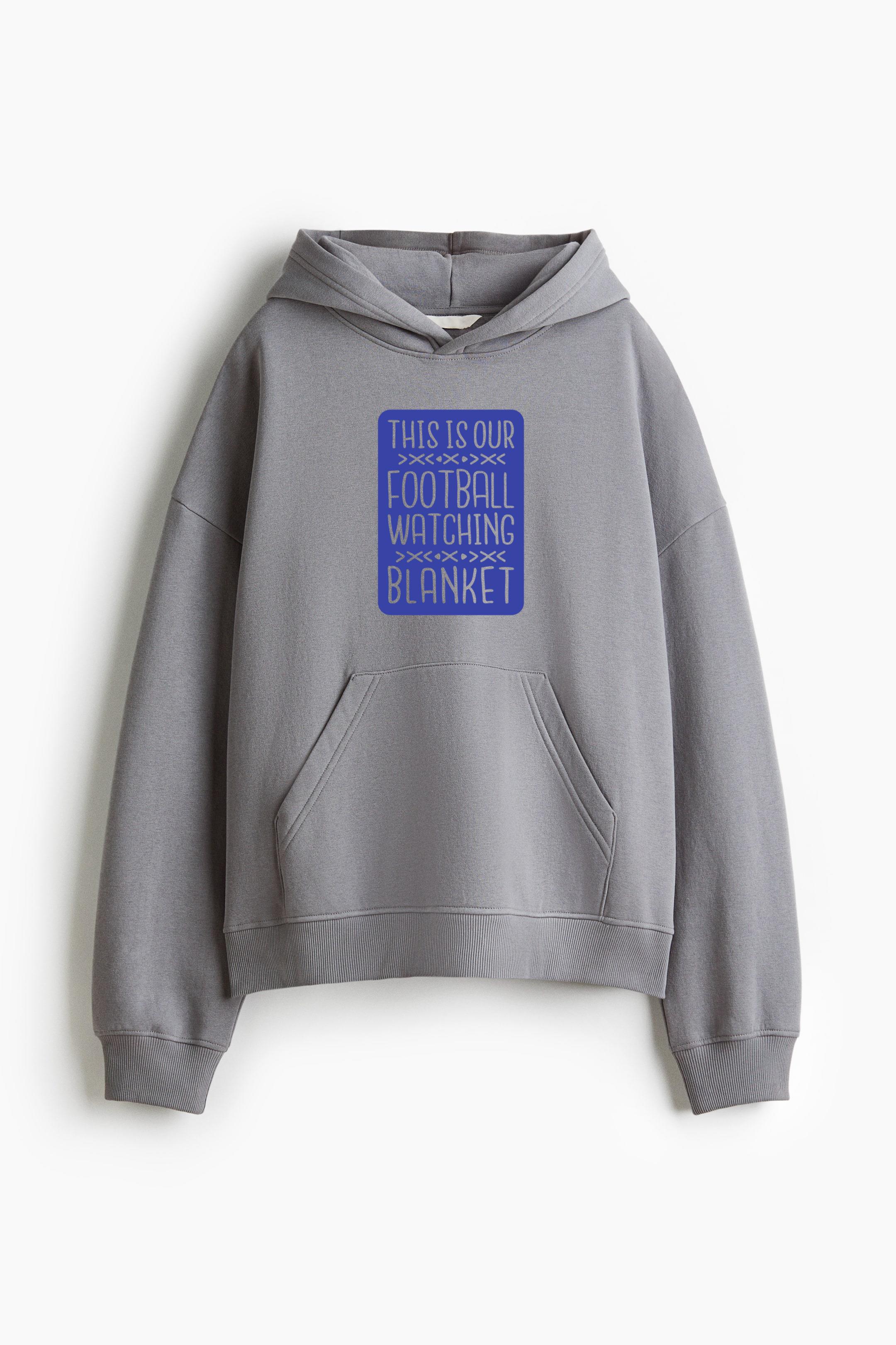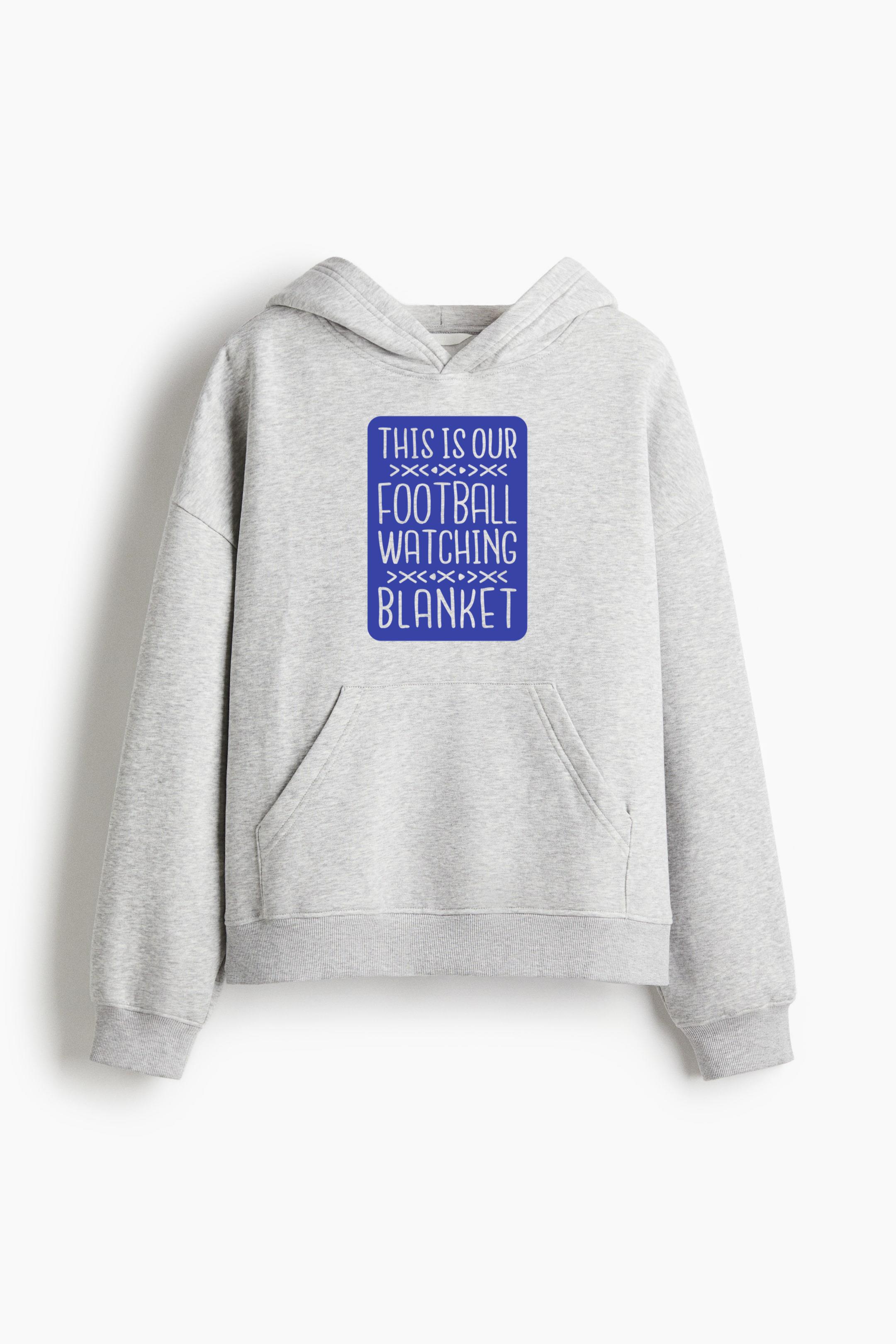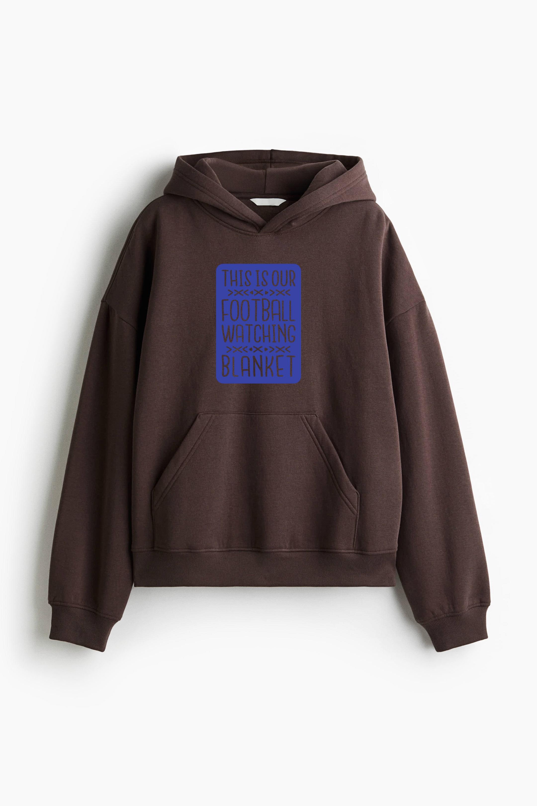 This Is Our Football Watching Blanket Oversized Fit Printed Hoodie Oversized Fit Printed Hoodie – Extra-Loose Cotton-Blend Sweatshirt with Graphic Print and Brushed Fleece Interior