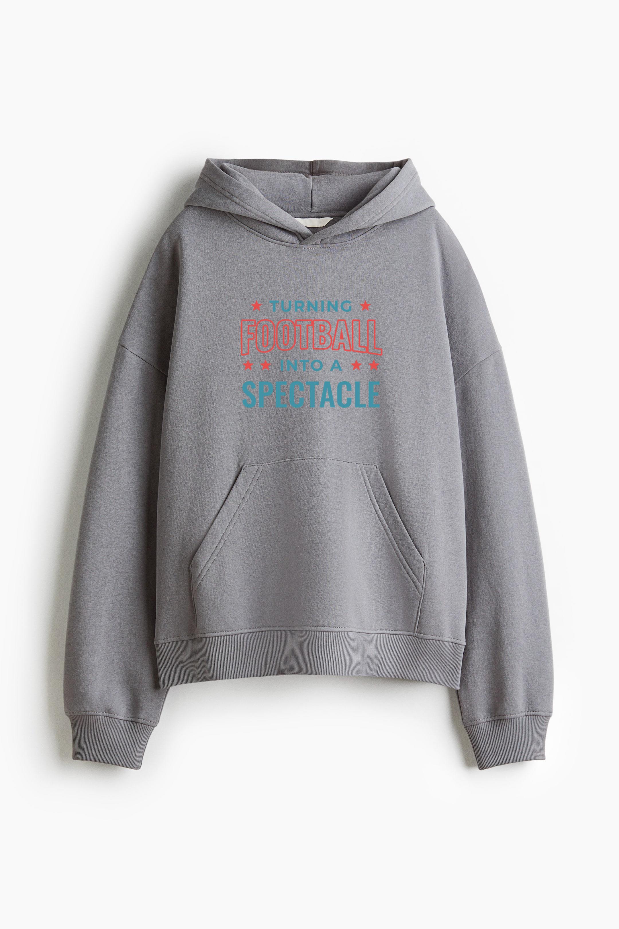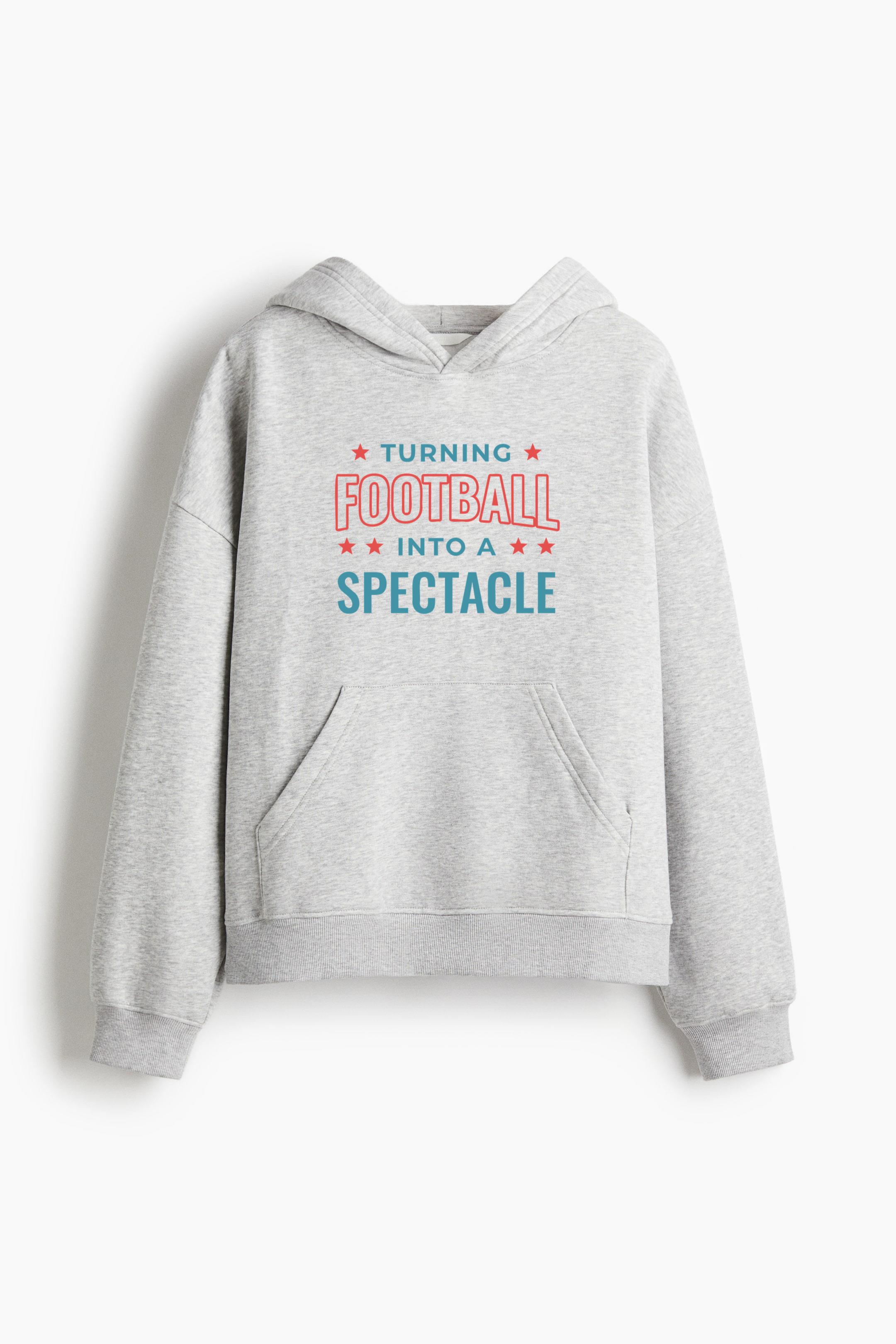 Turning Football Into A Spectacle Design () Oversized Fit Printed Hoodie Oversized Fit Printed Hoodie – Extra-Loose Cotton-Blend Sweatshirt with Graphic Print and Brushed Fleece Interior