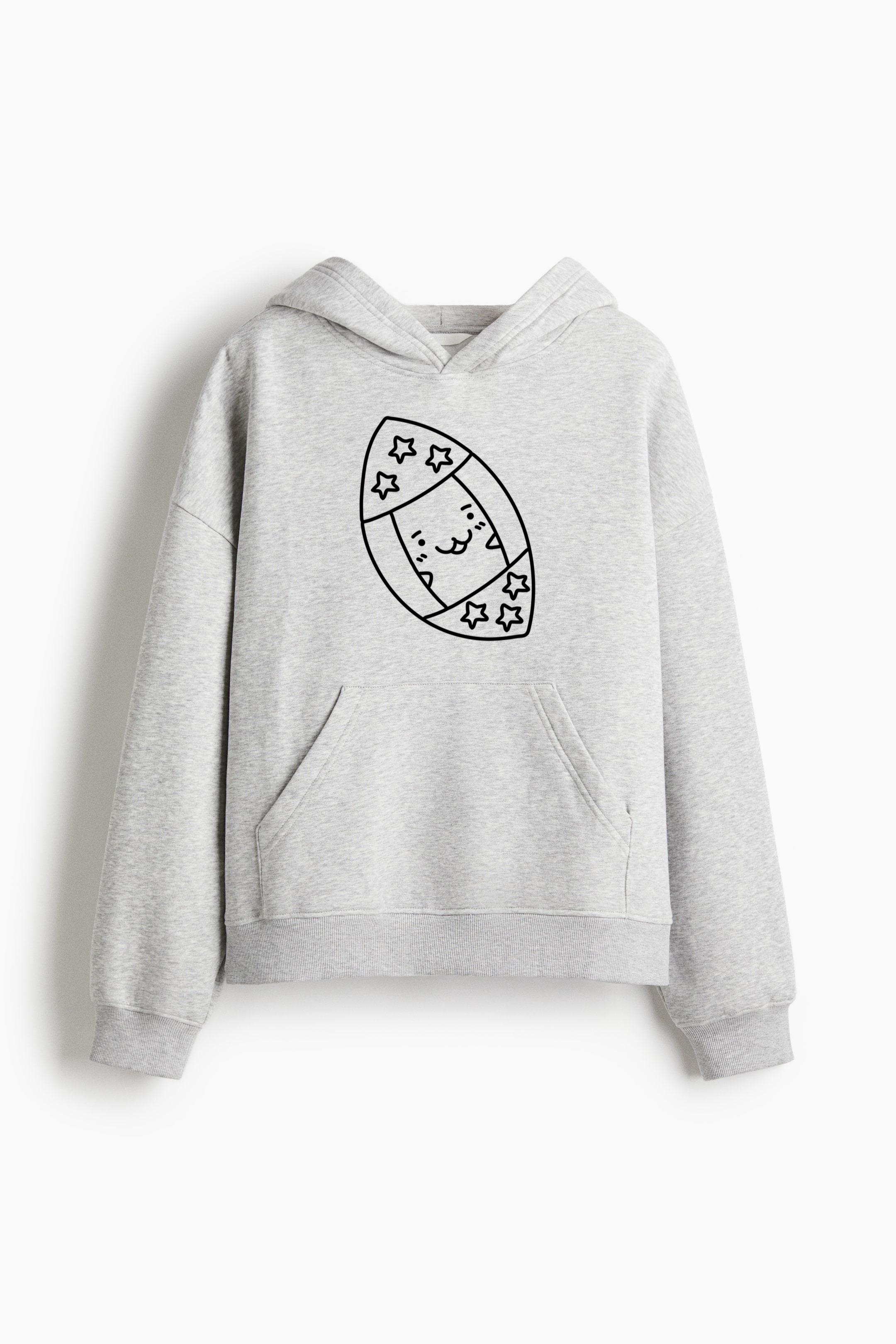 Make a bold statement in comfort with our Usa Elements Football Ball Character Stroke Oversized Fit Printed Hoodie Oversized Fit Printed Hoodie. Crafted from a soft, medium-weight cotton blend, this sweatshirt hoodie features a graphic motif, heavily dropped shoulders, and a relaxed silhouette for effortless streetwear style.