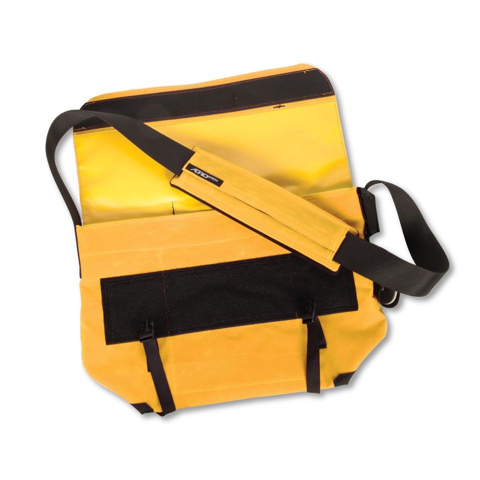 Experience the perfect blend of style and waterproofness with our Waterproof Waxed Cotton Courier Bag . Crafted with meticulous attention to detail, these bags feature a seamless bottom for exceptional durability. Inside, youll find a convenient organizer pocket and a clip-on key loop for added utility. The soft and supple waxed cotton material only gets better with time, developing a unique, personalized look as you use it. The adjustable nylon shoulder strap ensures a secure and comfortable fit, while the oversized load-spreading pad offers unmatched carrying comfort. With a large flap closure equipped with both hook and loop strips and quick-release buckles, this bag accommodates varying load sizes. The addition of a top-carrying handle and a 3M Scotchlite™ reflective strip on the flap ensures both practicality and visibility. Choose from versatile color options in Black, Brown, Green, Yellow, or Orange.